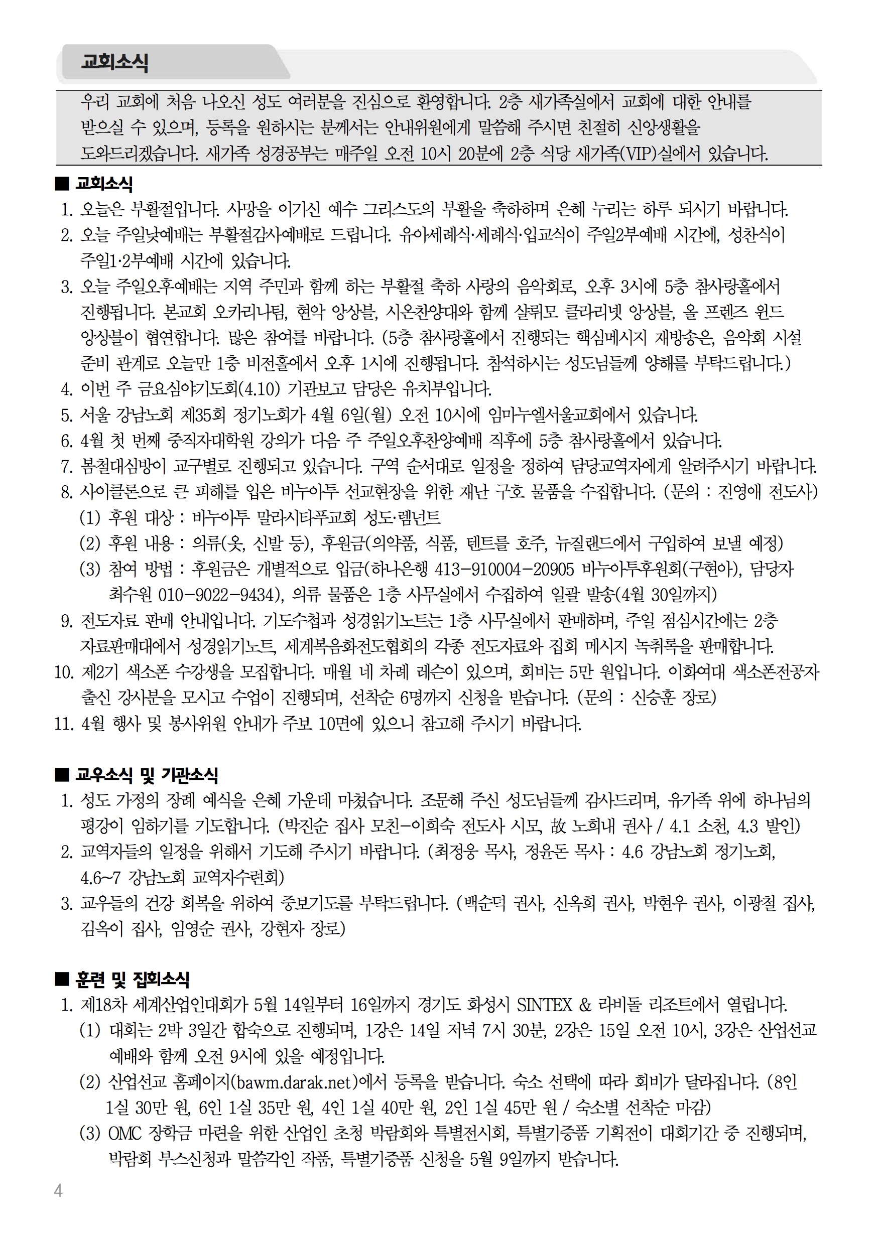 2015년 4월 5일 주보 2015년 4월 5일 주보 초대교회의 세 가지 확신(행3:11-26) 제10회 의료인 공동체 수련회 RMCC 2015년 4월 5일 주보 Posted on 2015년 4월 4일 in 주보 제 48권 14호 2015년 4월 5일 주보 주보 보기(PDF) Share this article: About truelove Related Articles 2020년 7월 5일 주보 2017년 12월 10일 주보 2018년 1월 28일 주보 2019년 1월 6일 주보