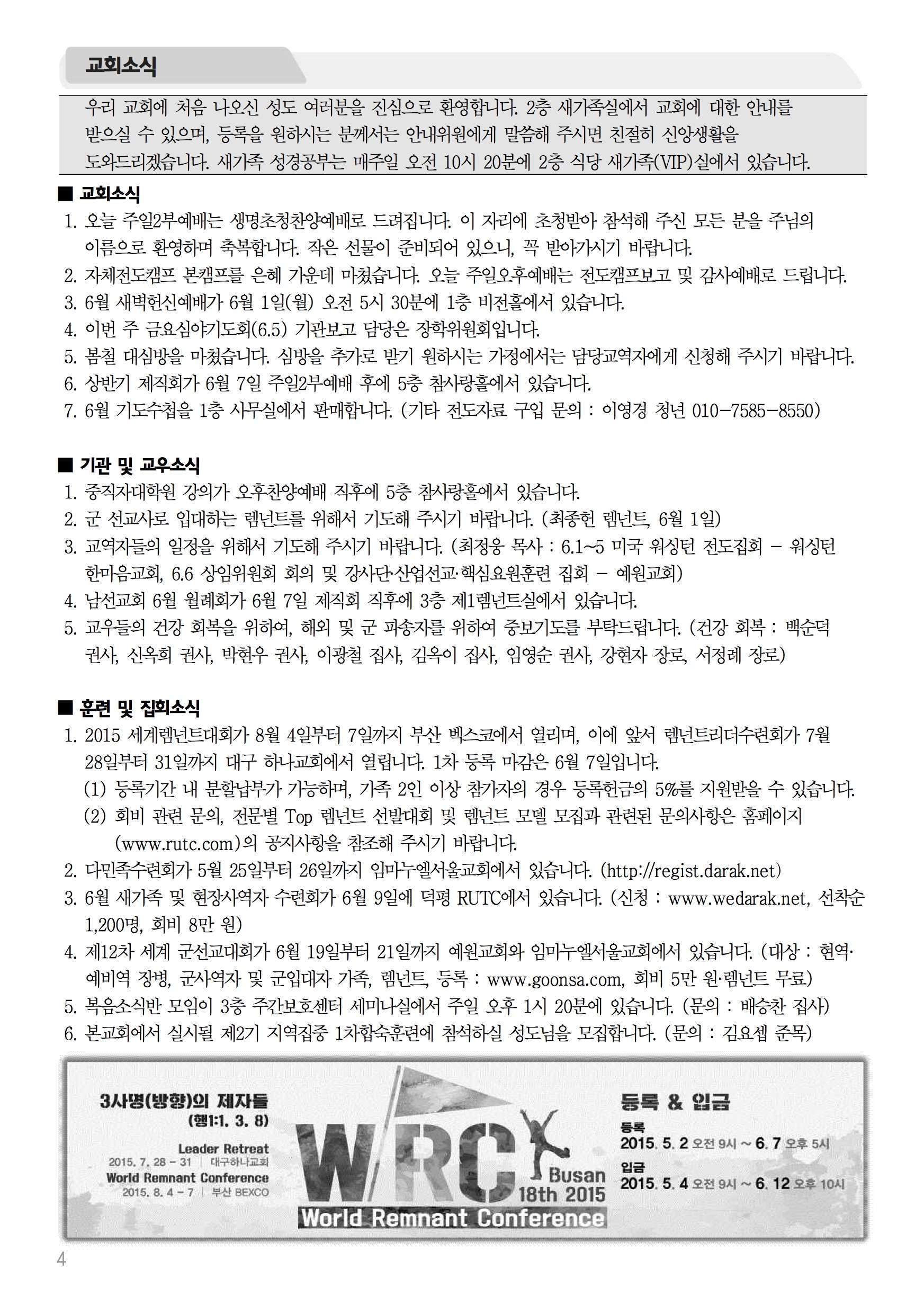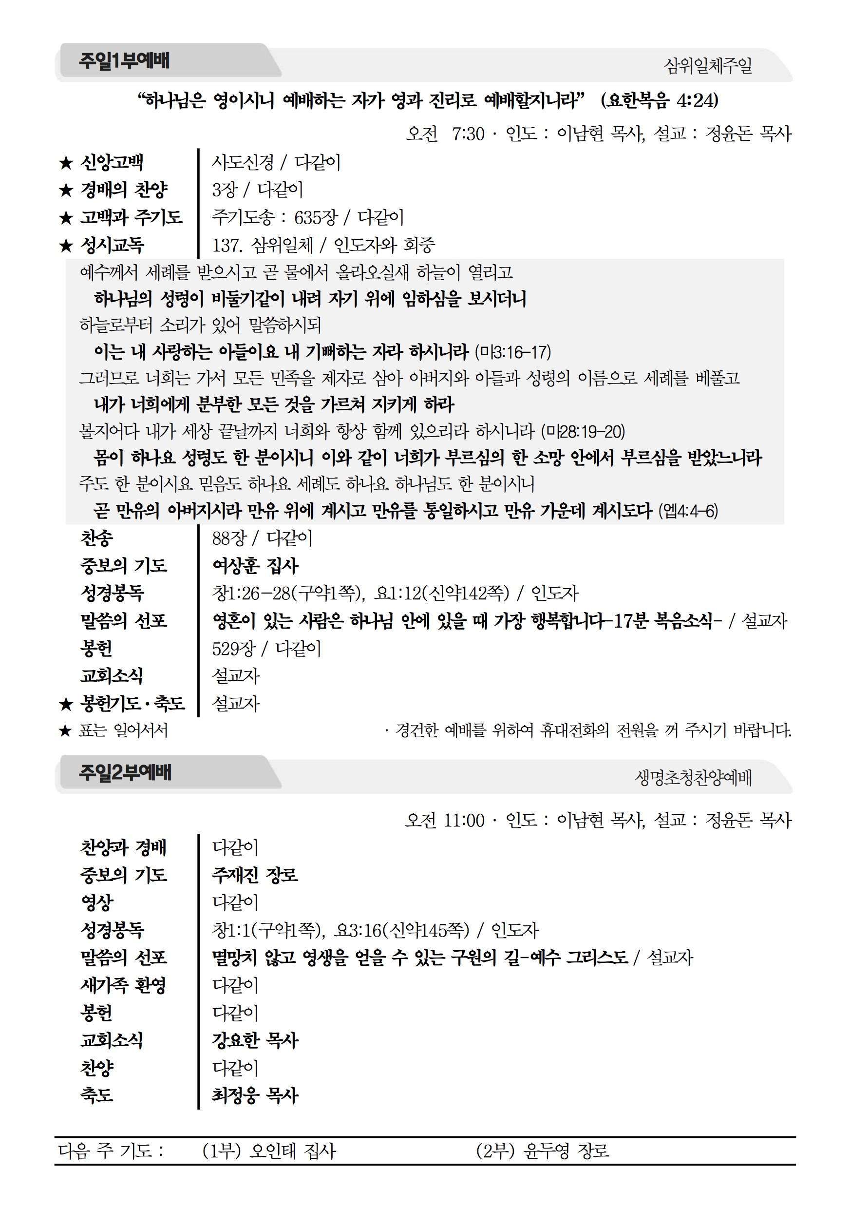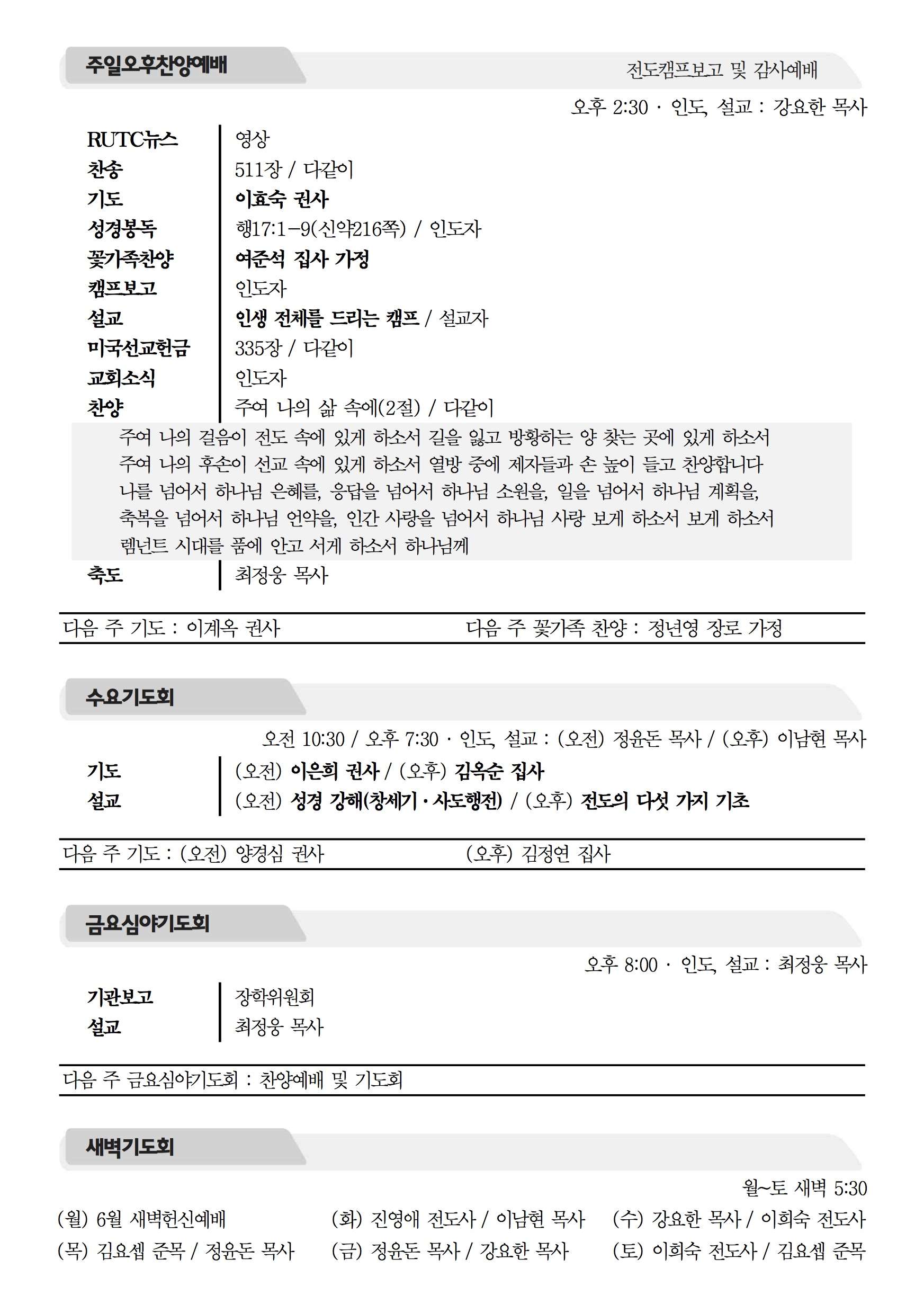 2015년 5월 31일 주보 2015년 5월 31일 주보 재앙의 흐름을 막는 집중(대하36:11-23) 로마를 보아야 하리라(행19:21, 행23:11, 행27:24) 2015년 5월 31일 주보 Posted on 2015년 5월 30일 in 주보 제 48권 22호 2015년 5월 31일 주보 주보 보기(PDF) Share this article: About truelove Related Articles 2020년 9월 13일 주보 2020년 11월 8일 주보 2016년 12월 18일 주보 2024년 11월 3일 주보