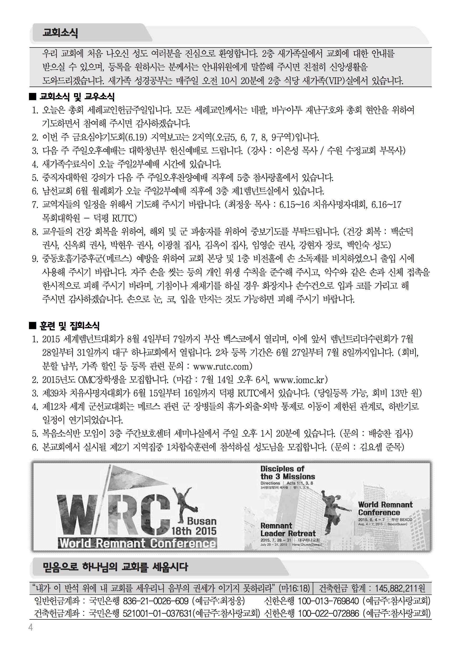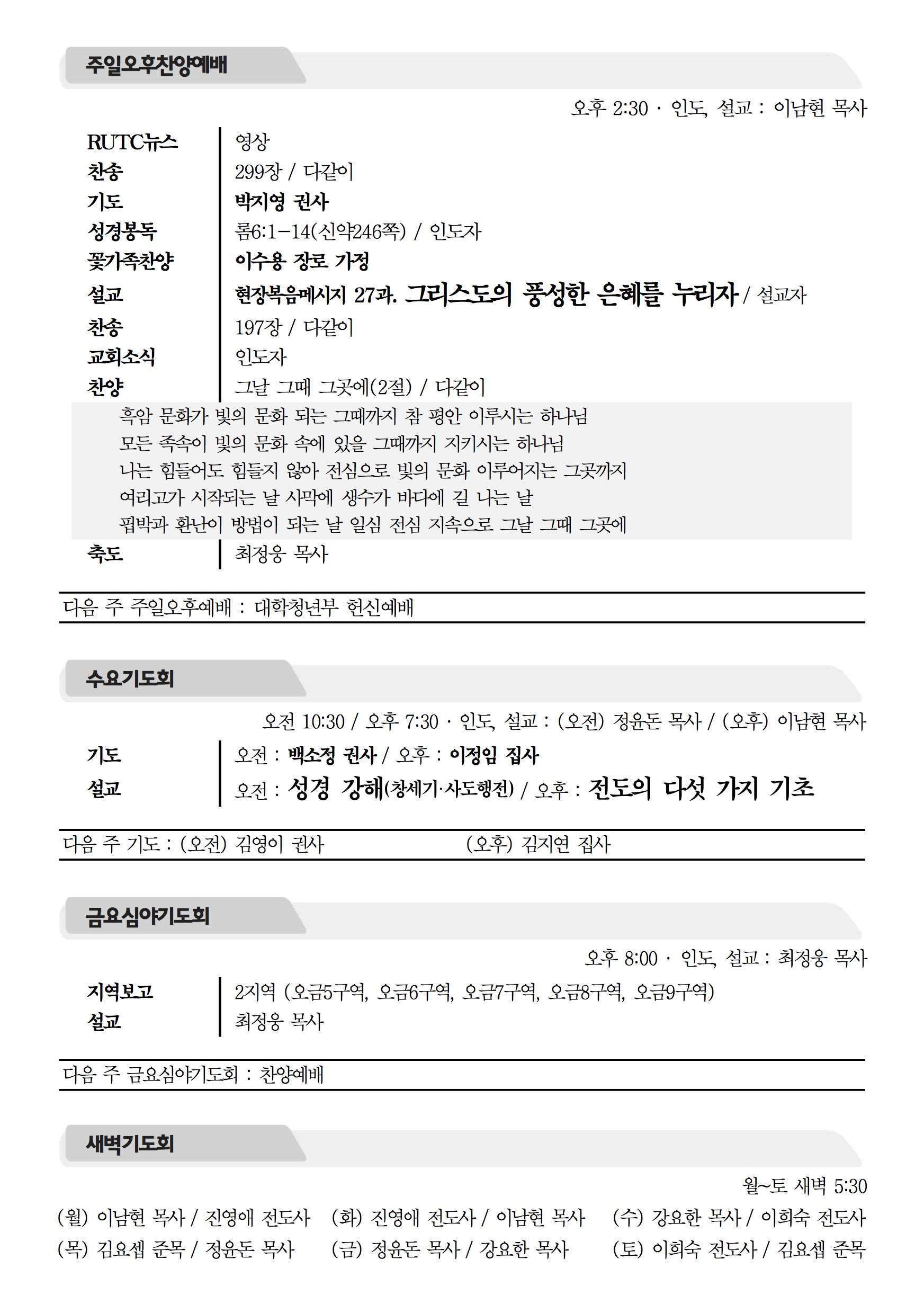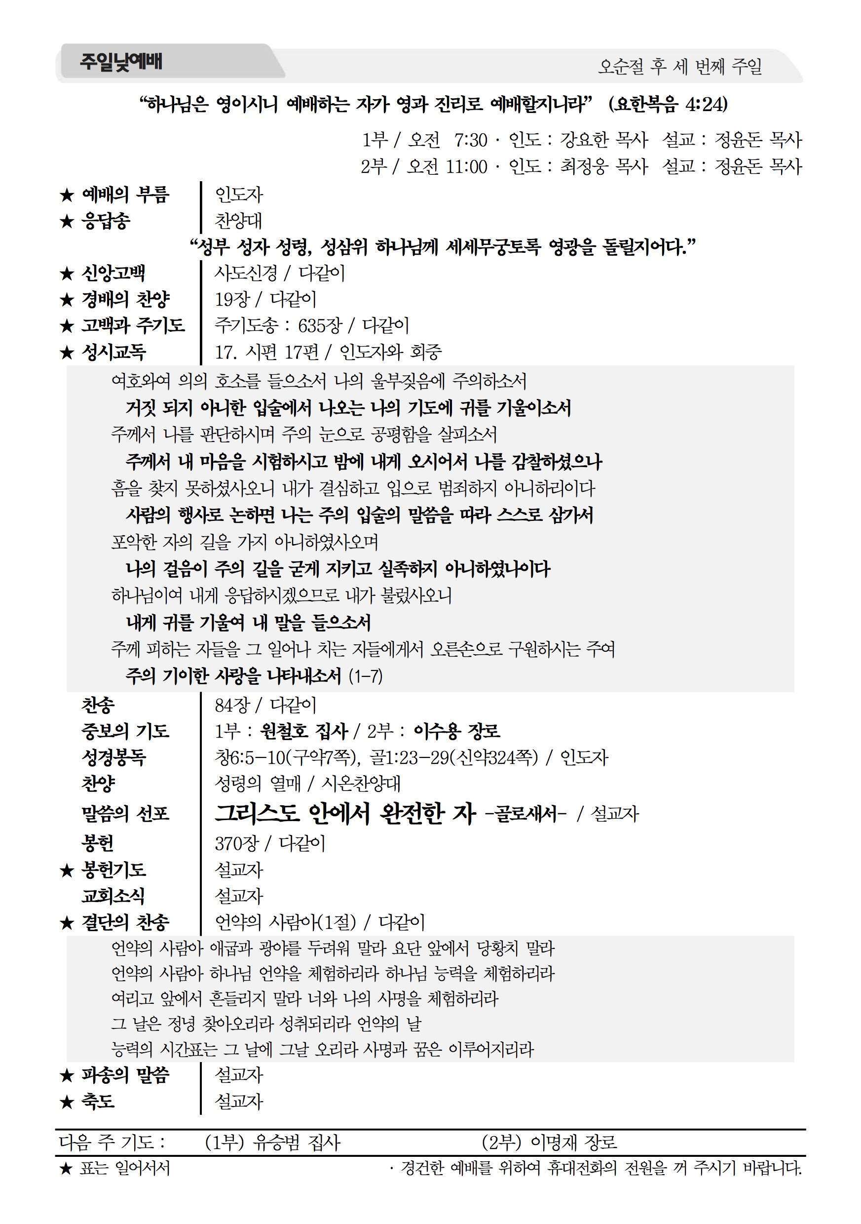 2015년 6월 14일 주보 2015년 6월 14일 주보 복음의 소망을 굳게 잡자(히10:23-25) 뒤로 물러가지 않는 자(미7:7-10, 히10:19-39) 2015년 6월 14일 주보 Posted on 2015년 6월 13일 in 주보 제 48권 24호 2015년 6월14일 주보 주보 보기(PDF) Share this article: About truelove Related Articles 2023년 7월 23일 주보 2023 송구영신예배 순서지 2021년 7월 25일 주보 2020년 4월 5일 주보