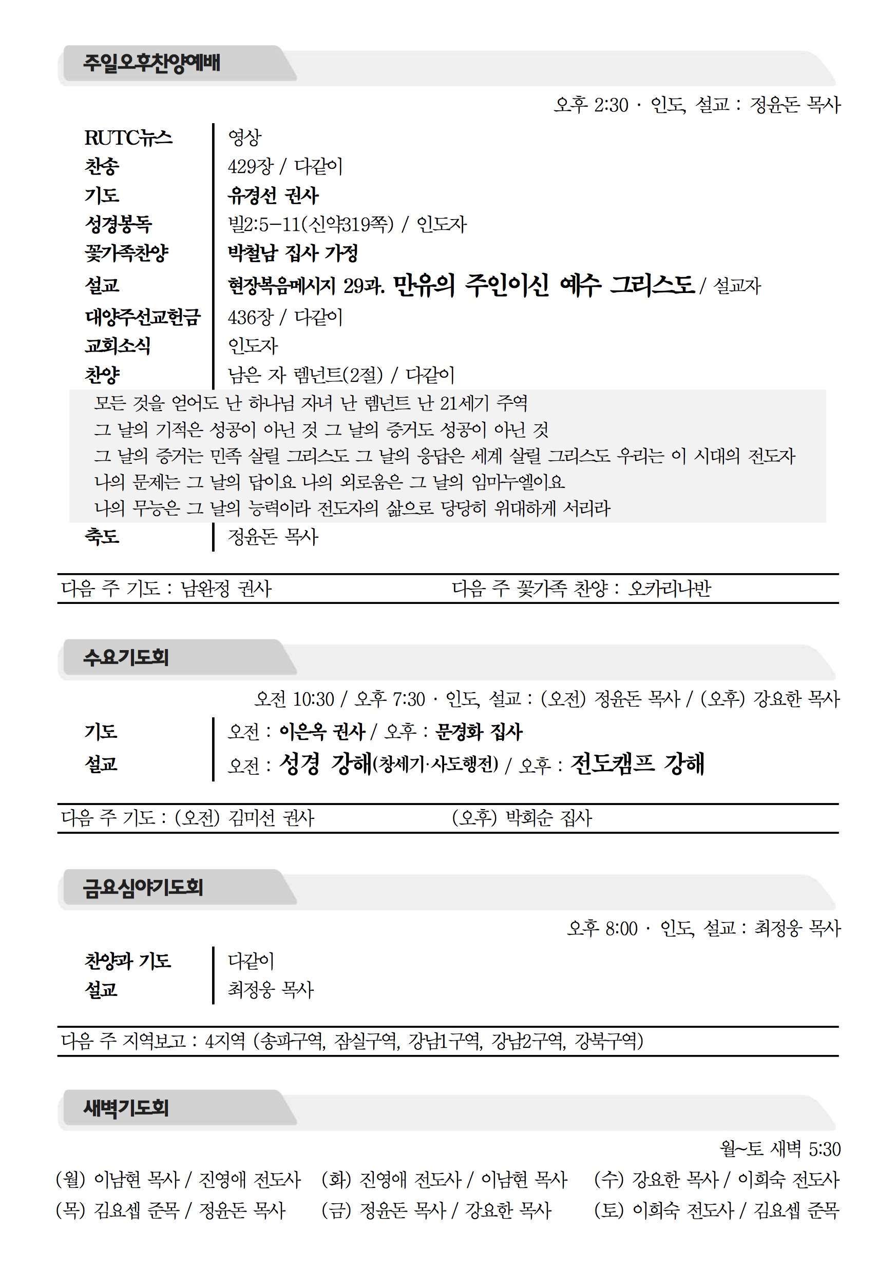 2015년 7월 5일 주보 2015년 7월 5일 주보 렘넌트 운동의 주역(느1:1-11) 경건을 훈련하라(딤전4:6-11) 2015년 7월 5일 주보 Posted on 2015년 7월 4일 in 주보 제 48권 27호 2015년 7월 5일 주보 주보 보기(PDF) Share this article: About truelove Related Articles 2017년 10월 1일 주보 2022년 10월 9일 주보 2023년 6월 25일 주보 2022년 5월 15일 주보