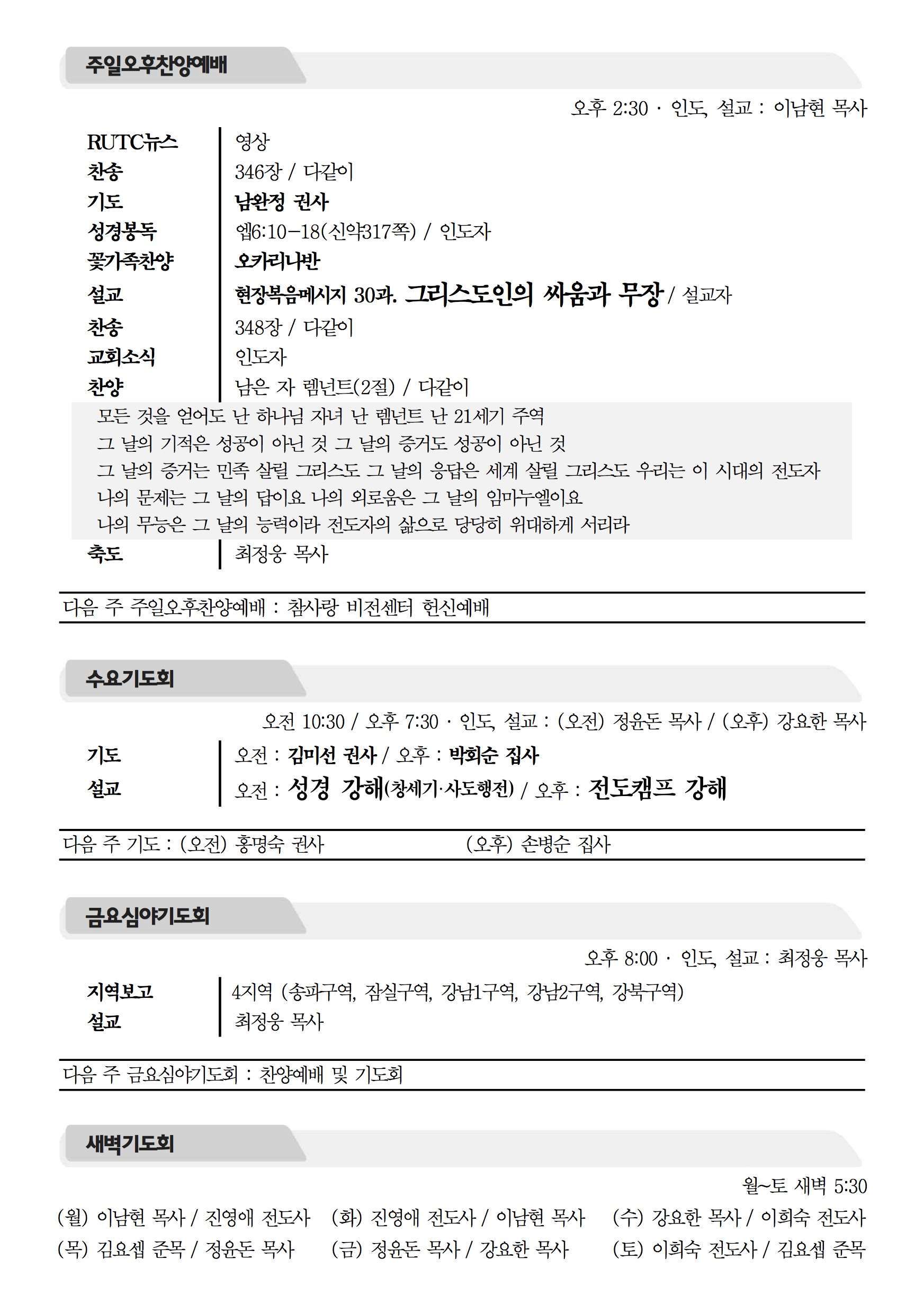 2015년 7월 12일 주보 2015년 7월 12일 주보 20150621 대학청년부 헌신예배 실현될 것을 미리 보는 믿음의 역사(창37:1-11, 히11:1-6) 2015년 7월 12일 주보 Posted on 2015년 7월 11일 in 주보 제 48권 28호 2015년 7월 12일 주보 주보 보기(PDF) Share this article: About truelove Related Articles 2016년 1월 31일 주보 2015년 2월 1일 주보 2016년 3월 6일 주보 2026년 4월 5일 주보