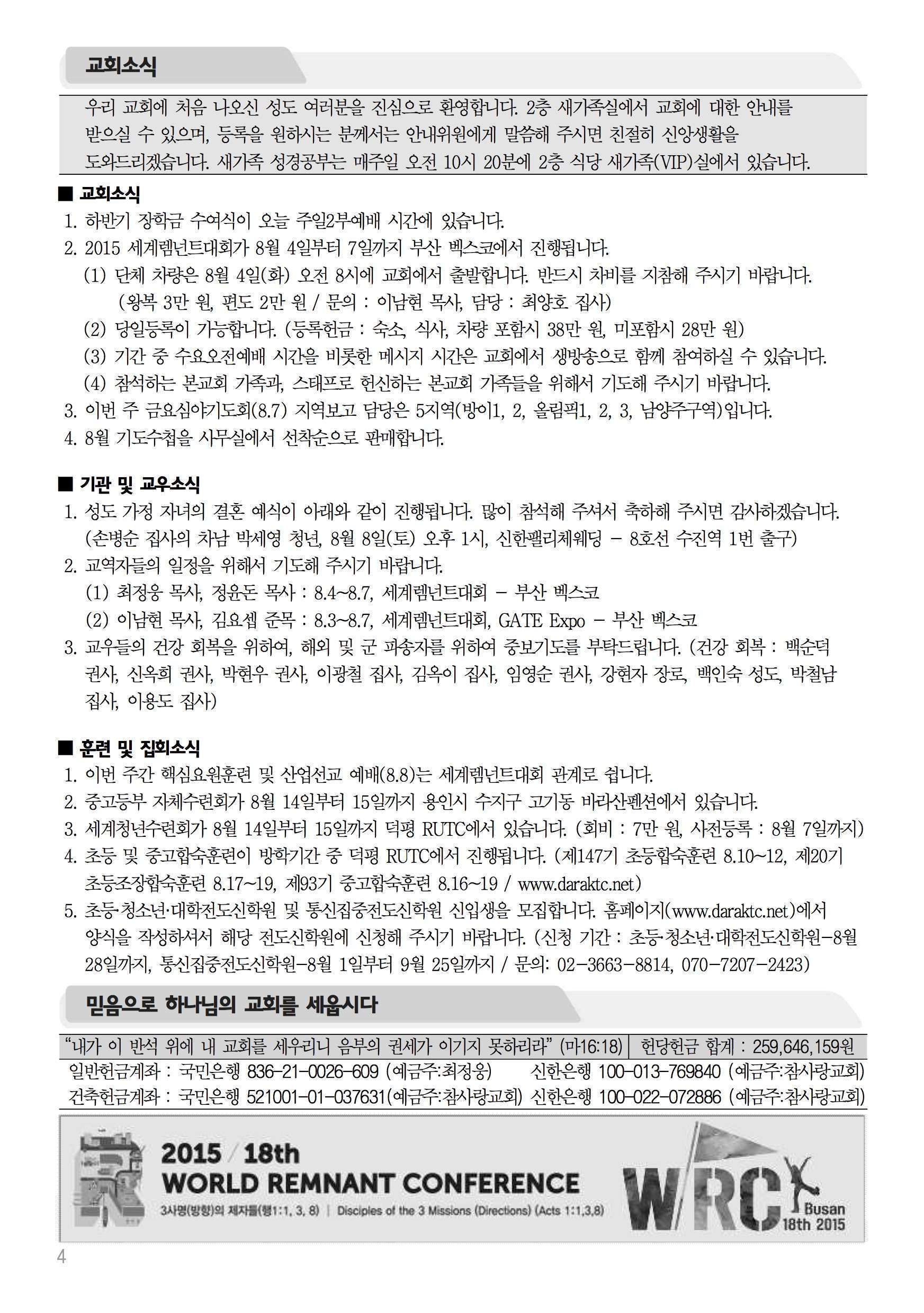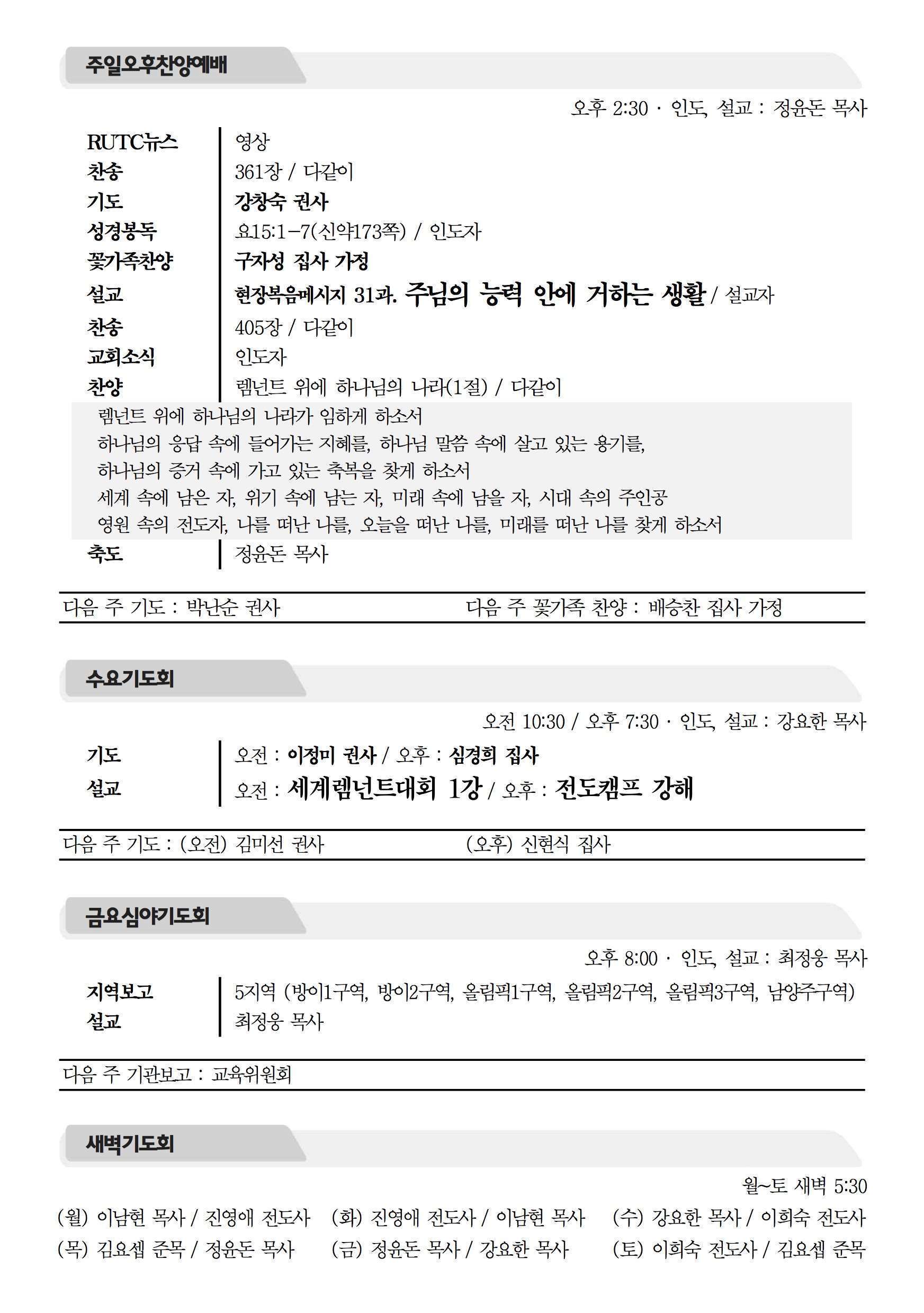 2015년 8월 2일 주보 2015년 8월 2일 주보 예수를 바라보자(히12:1-13) 예수를 생각하라, 예수를 바라보라(시42:1-11, 히12:1-13) 2015년 8월 2일 주보 Posted on 2015년 7월 25일 in 주보 제 48권 31호 2015년 8월 2일 주보 주보 보기(PDF) Share this article: About truelove Related Articles 2022년 9월 25일 주보 2017년 7월 9일 주보 2016년 3월 27일 주보 2020년 5월 10일 주보