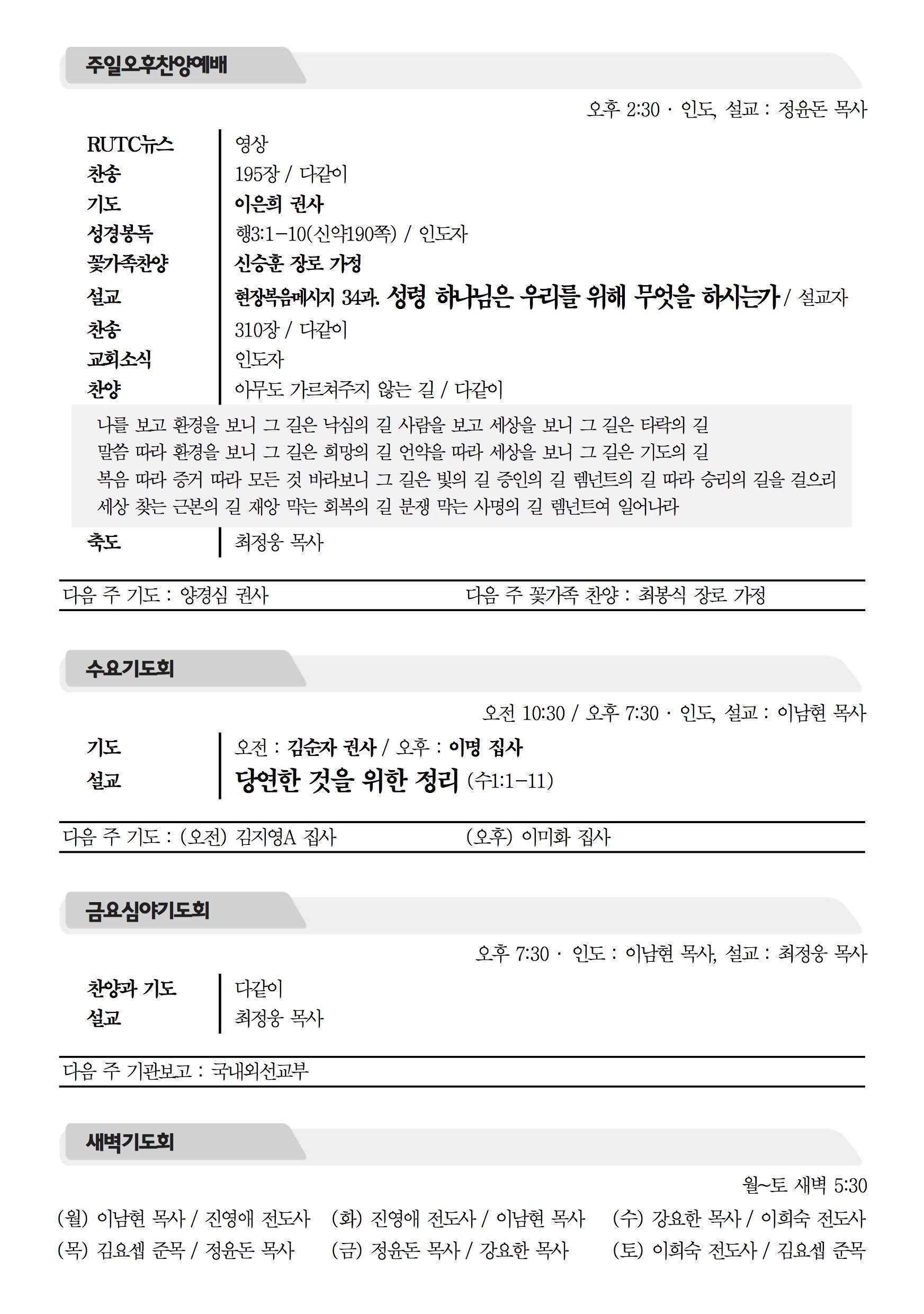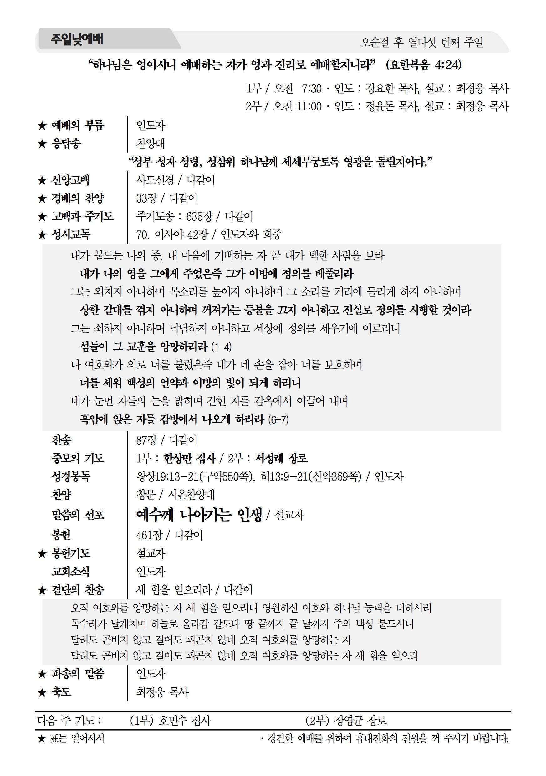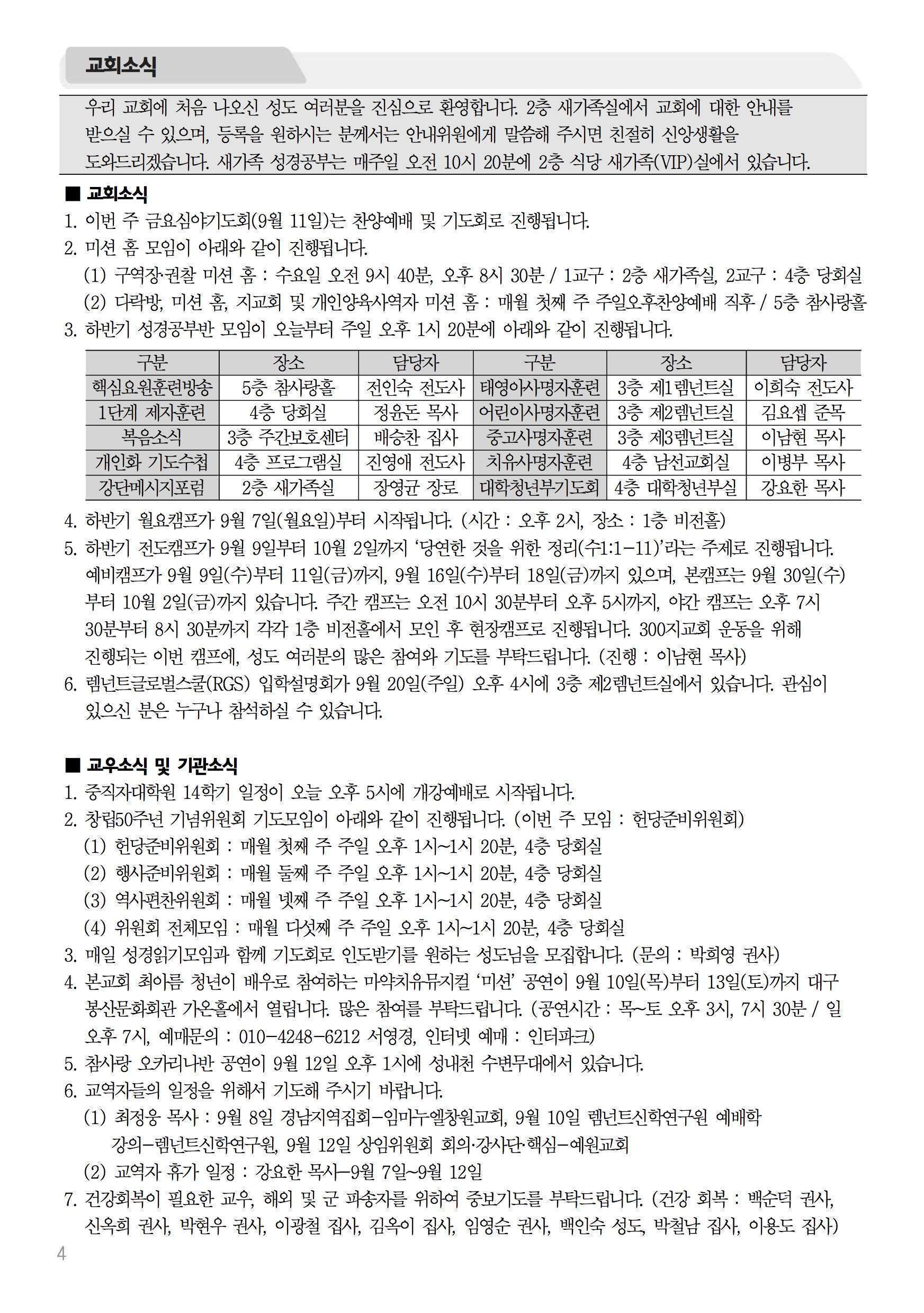 2015년 9월 6일 주보 2015년 9월 6일 주보 구원의 길, 전도자의 길(롬10:9-15) 우리의 기도를 들으시는 하나님 (렘29:11-14) 2015년 9월 6일 주보 Posted on 2015년 9월 4일 in 주보 제 48권 36호 2015년 9월 6일 주보 주보 보기(PDF) Share this article: About truelove Related Articles 2024년 1월 21일 주보 2015년 12월 6일 주보 2016년 9월 11일 주보 2025년 8월 10일 주보