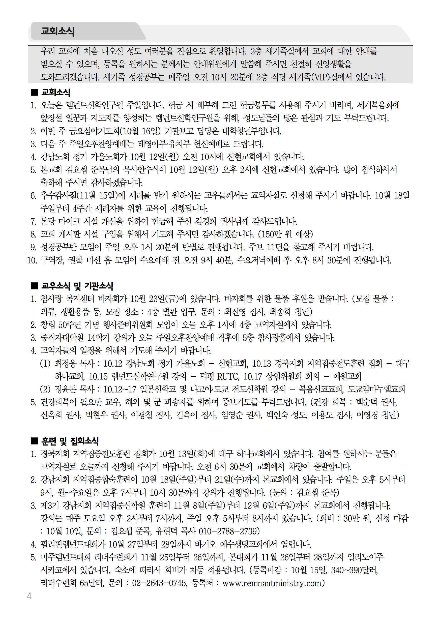 2015년 10월 11일 주보 2015년 10월 11일 주보 영적싸움을 싸워야 할 이유(삿2:1-5) 틈을 주지 말아야 할 이유(삿1:27-2:5, 엡4:25-27) 2015년 10월 11일 주보 Posted on 2015년 10월 10일 in 주보 제 48권 41호 2015년 10월 11일 주보 주보 보기(PDF) Share this article: About truelove Related Articles 2021년 7월 11일 주보 2021년 3월 14일 주보 2019년 9월 29일 주보 2016년 12월 18일 주보