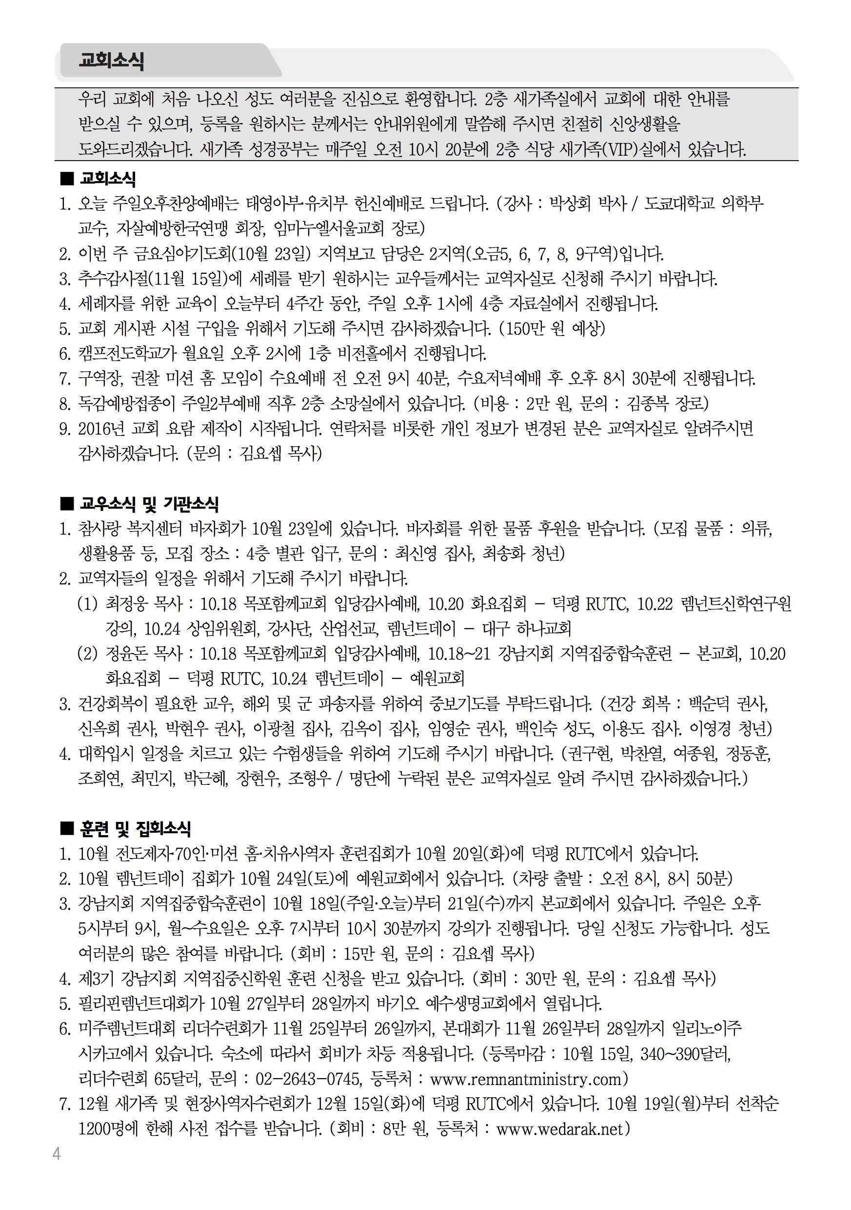 2015년 10월 18일 주보 2015년 10월 18일 주보 질그릇에 담긴 보배(고후4:5-7) 우리가 전파하는 것(사60:1-5, 고후4:5-7) 2015년 10월 18일 주보 Posted on 2015년 10월 16일 in 주보 제 48권 42호 2015년 10월 18일 주보 주보 보기(PDF) Share this article: About truelove Related Articles 2015년 5월 3일 주보 2025년 6월 29일 주보 2021년 2월 21일 주보 2025년 3월 16일 주보