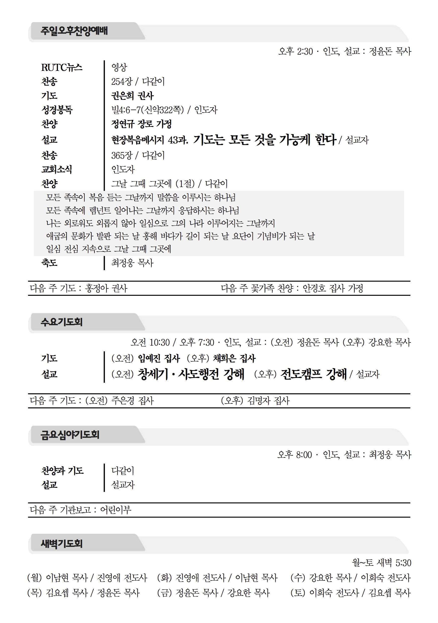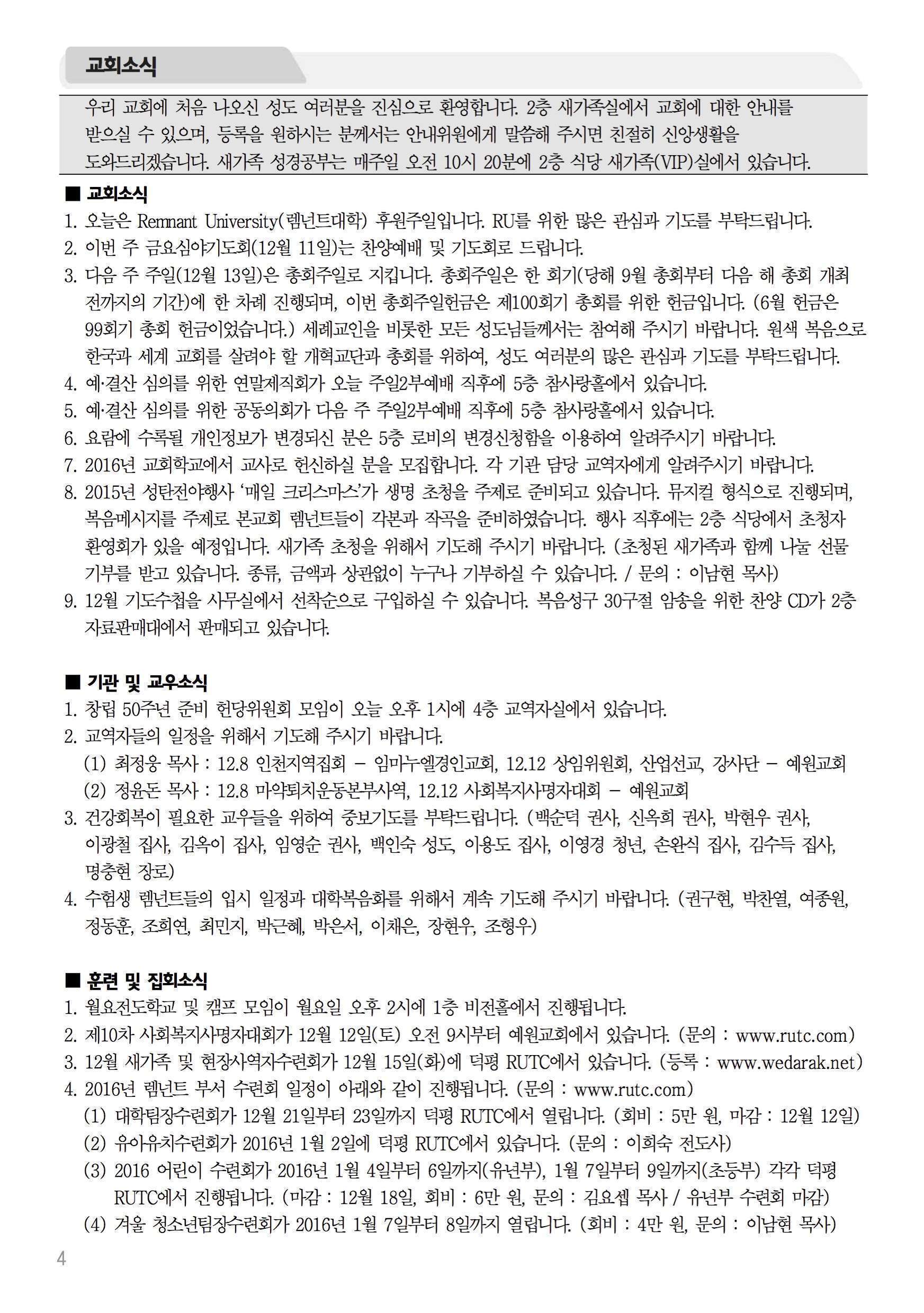2015년 12월 6일 주보 2015년 12월 6일 주보 도대체 예수 그리스도는 누구신가?(마16:13-20) 날마다 메리 크리스마스(마1:23) 2015년 12월 6일 주보 Posted on 2015년 12월 4일 in 주보 제 48권 49호 2015년 12월 6일 주보 주보 보기(PDF) Share this article: About truelove Related Articles 2024년 3월 10일 주보 2017년 8월 20일 주보 2021년 2월 28일 주보 2022년 3월 13일 주보