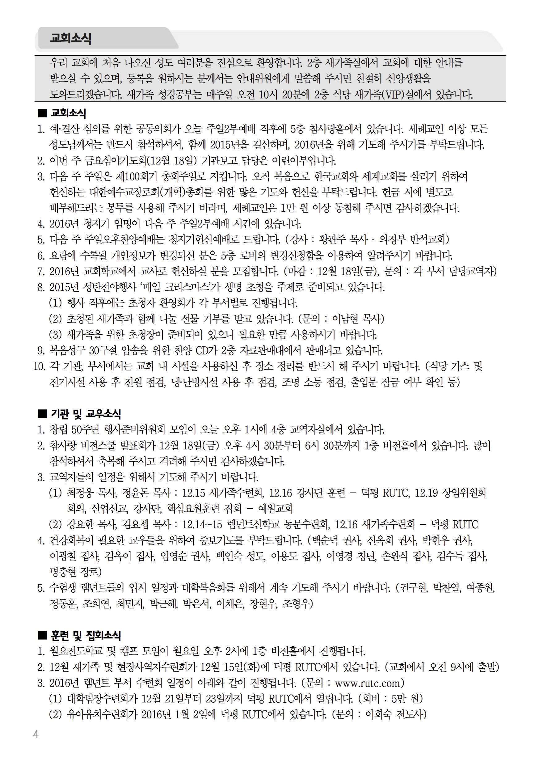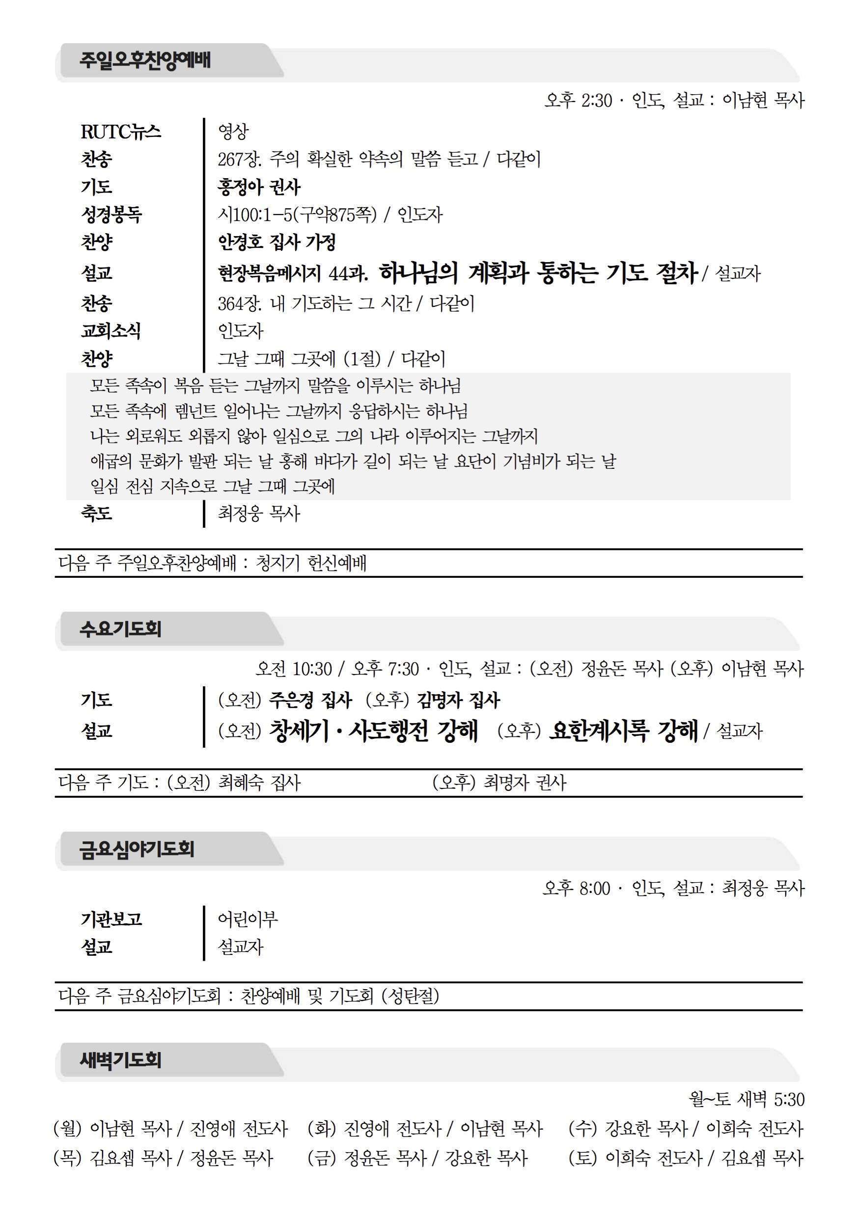 2015년 12월 13일 주보 2015년 12월 13일 주보 천명무패(삿4:1-7) 드보라 전도운동(삿4:1-10, 행18:24-28) 2015년 12월 13일 주보 Posted on 2015년 12월 11일 in 주보 제 48권 50호 2015년 12월 13일 주보 주보 보기(PDF) Share this article: About truelove Related Articles 2015년 7월 5일 주보 2024년 2월 4일 주보 2018년 1월 21일 주보 2022년 5월 8일 주보