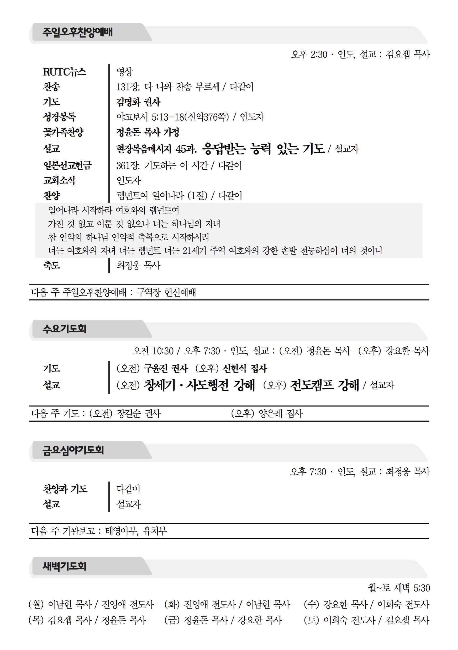 2016년 1월 10일 주보 2016년 1월 10일 주보 하나님의 목표에 쓰임 받은 기드온(삿 7:7-9) 300명(삿7:1-8, 고전1:26-31) 2016년 1월 10일 주보 Posted on 2016년 1월 9일 in 주보 제 49권 2호 2016년 1월 10일 주보 주보 보기(PDF) Share this article: About truelove Related Articles 2019년 8월 18일 주보 2019년 12월 8일 주보 2023년 5월 7일 주보 2025년 8월 31일 주보