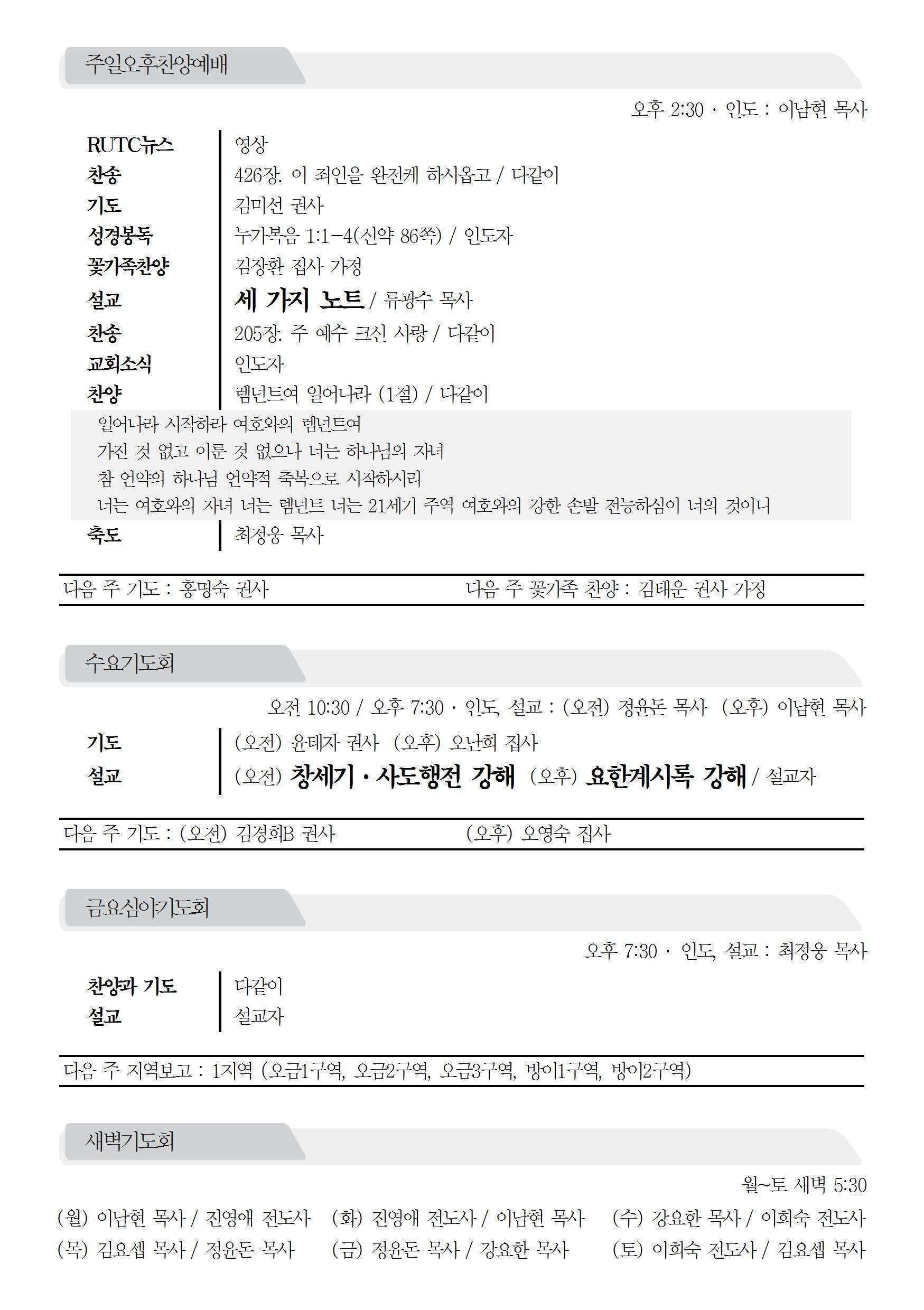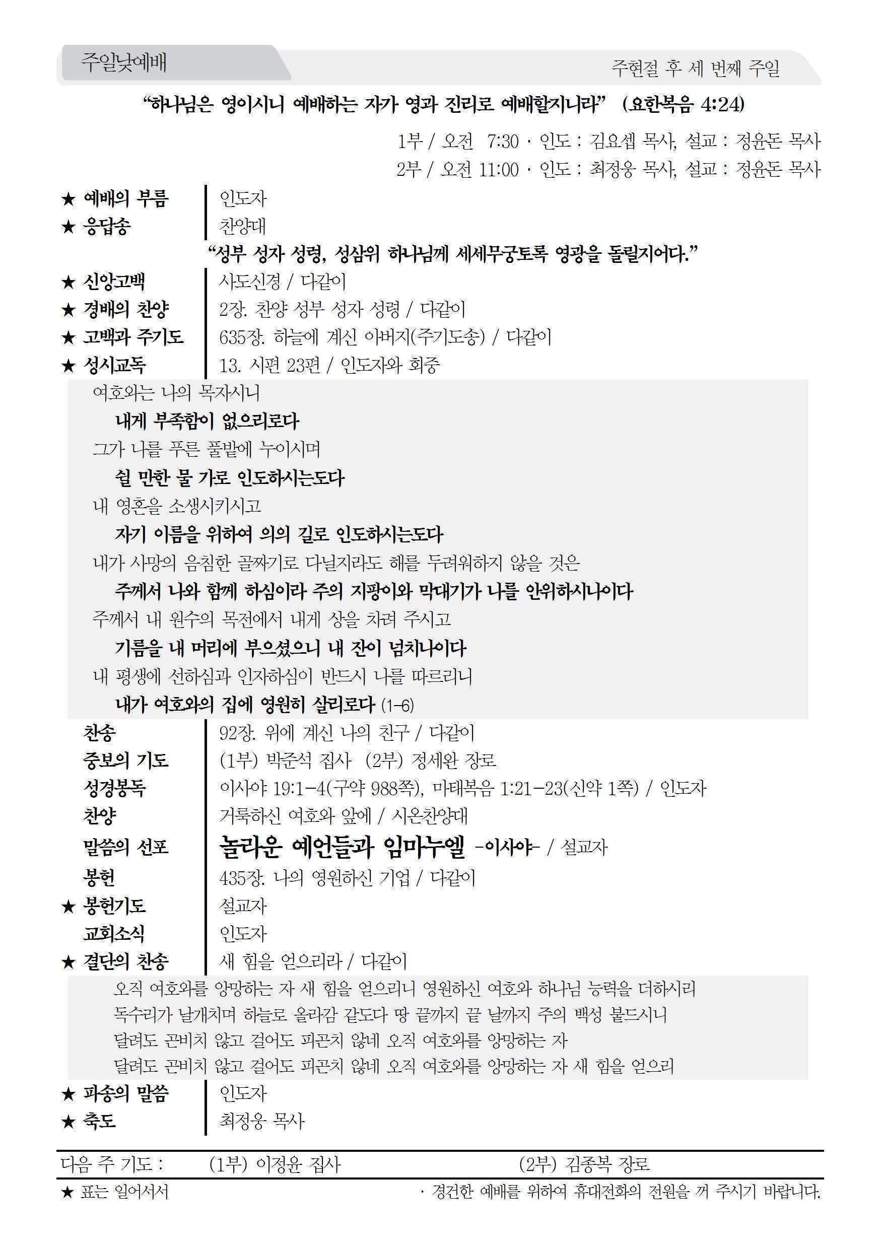 2016년 1월 24일 주보 2016년 1월 24일 주보 청년의 때(전11:9-12:2) 영광을 하나님께만 돌려야(삿8:22-35, 행19:8-21) 2016년 1월 24일 주보 Posted on 2016년 1월 23일 in 주보 제 49권 4호 2016년 1월 24일 주보 주보 보기(PDF) Share this article: About truelove Related Articles 2021년 2월 28일 주보 2017년 3월 12일 주보 2020년 1월 26일 주보 2017년 11월 5일 주보