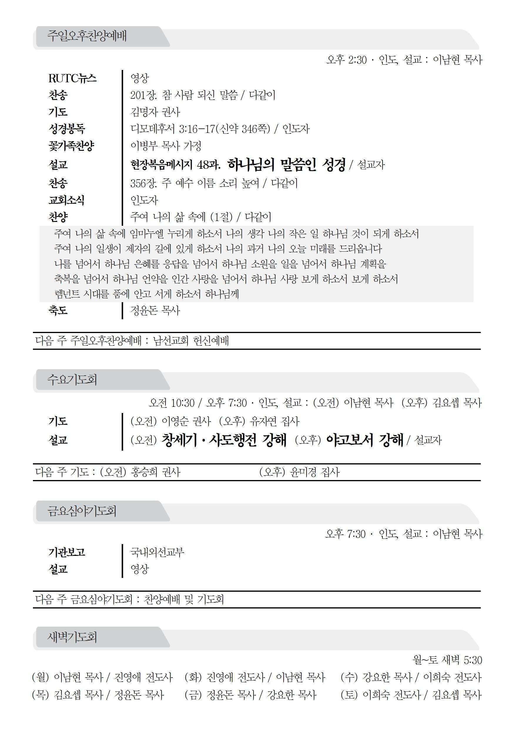 2016년 2월 14일 주보 2016년 2월 14일 주보 복음의 실제(삿11:29-34) 희생되는 후대(삿11:29-40, 눅23:28) 2016년 2월 14일 주보 Posted on 2016년 2월 13일 in 주보 제 49권 7호 2016년 2월 14일 주보 주보 보기(PDF) Share this article: About truelove Related Articles 2015년 12월 20일 주보 2023년 2월 19일 주보 2021년 9월 12일 주보 2019년 10월 20일 주보