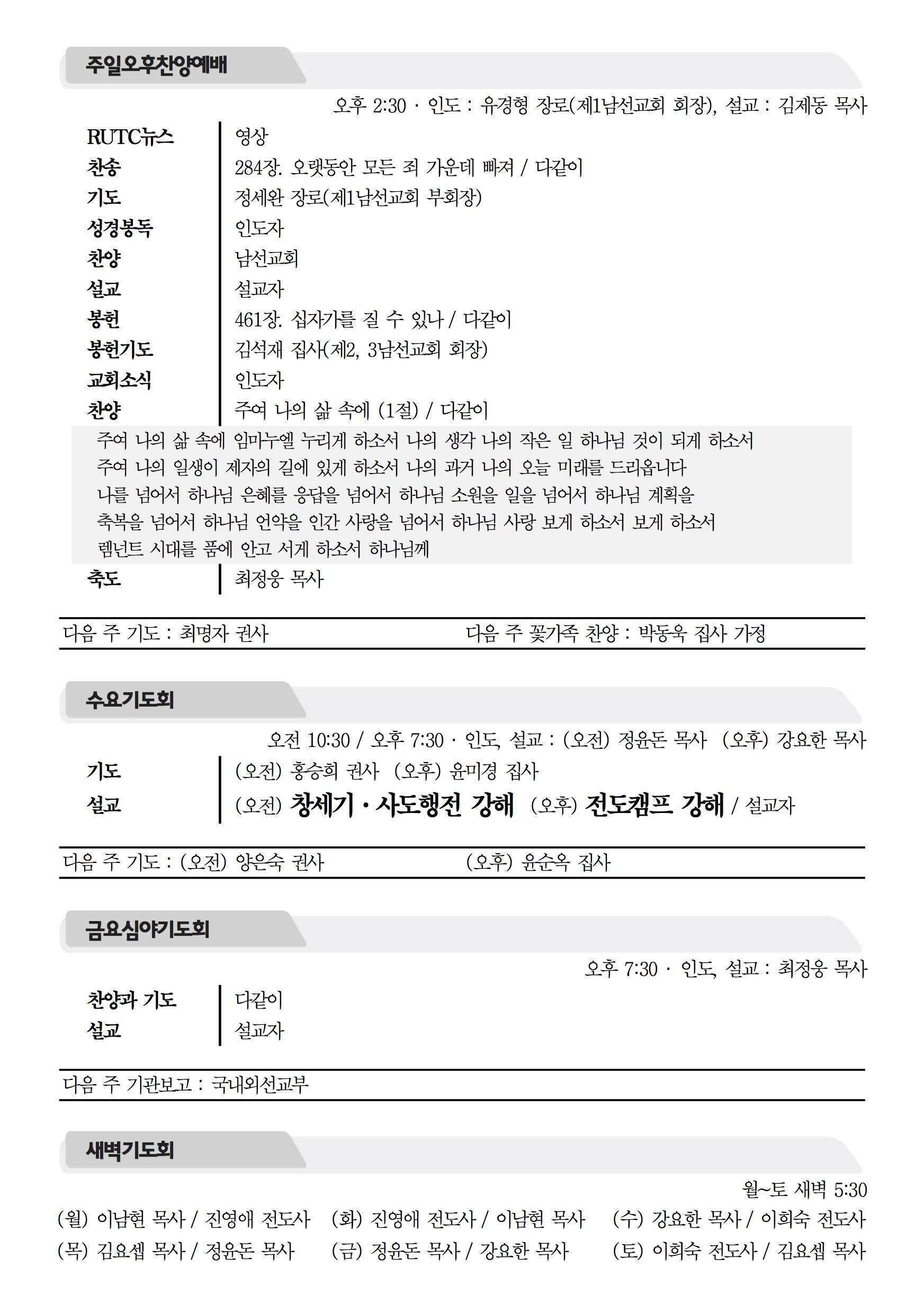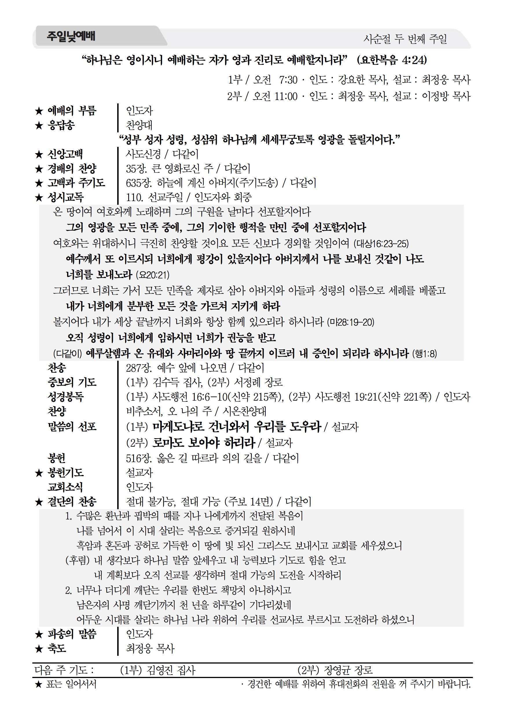 2016년 2월 21일 주보 2016년 2월 21일 주보 절대 헌신의 믿음(약2:14-17) 오직 믿음과 행함이 있는 믿음(잠6:6-19, 약2:14-26) 2016년 2월 21일 주보 Posted on 2016년 2월 20일 in 주보 제 49권 8호 2016년 2월 21일 주보 주보 보기(PDF) Share this article: About truelove Related Articles 2022년 5월 1일 주보 2017년 11월 12일 주보 2015년 설날 가정예배 순서지 2018년 3월 25일 주보