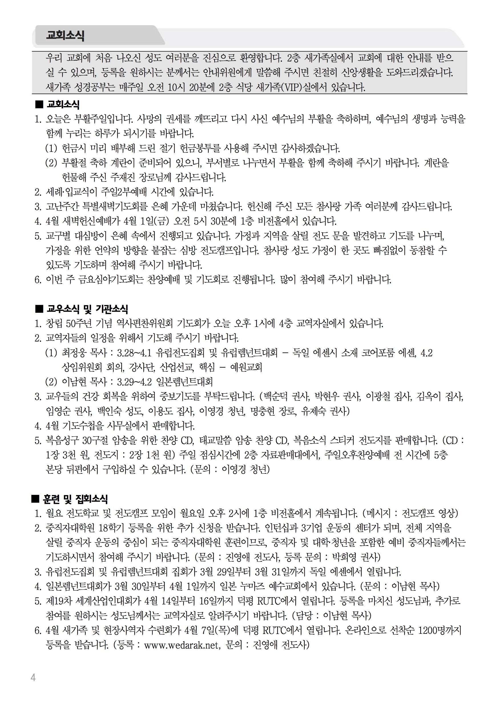 2016년 3월 27일 주보 2016년 3월 27일 주보 그가 말씀하시던 대로(마28:1-20) 응답도 스케일이 다른 그 곳! 2016 중국비전트립! 2016년 3월 27일 주보 Posted on 2016년 3월 25일 in 주보 제 49권 13호 2016년 3월 27일 주보 주보 보기(PDF) Share this article: About truelove Related Articles 2015년 5월 3일 주보 2026년 3월 22일 주보 2016년 1월 31일 주보 2022년 8월 28일 주보