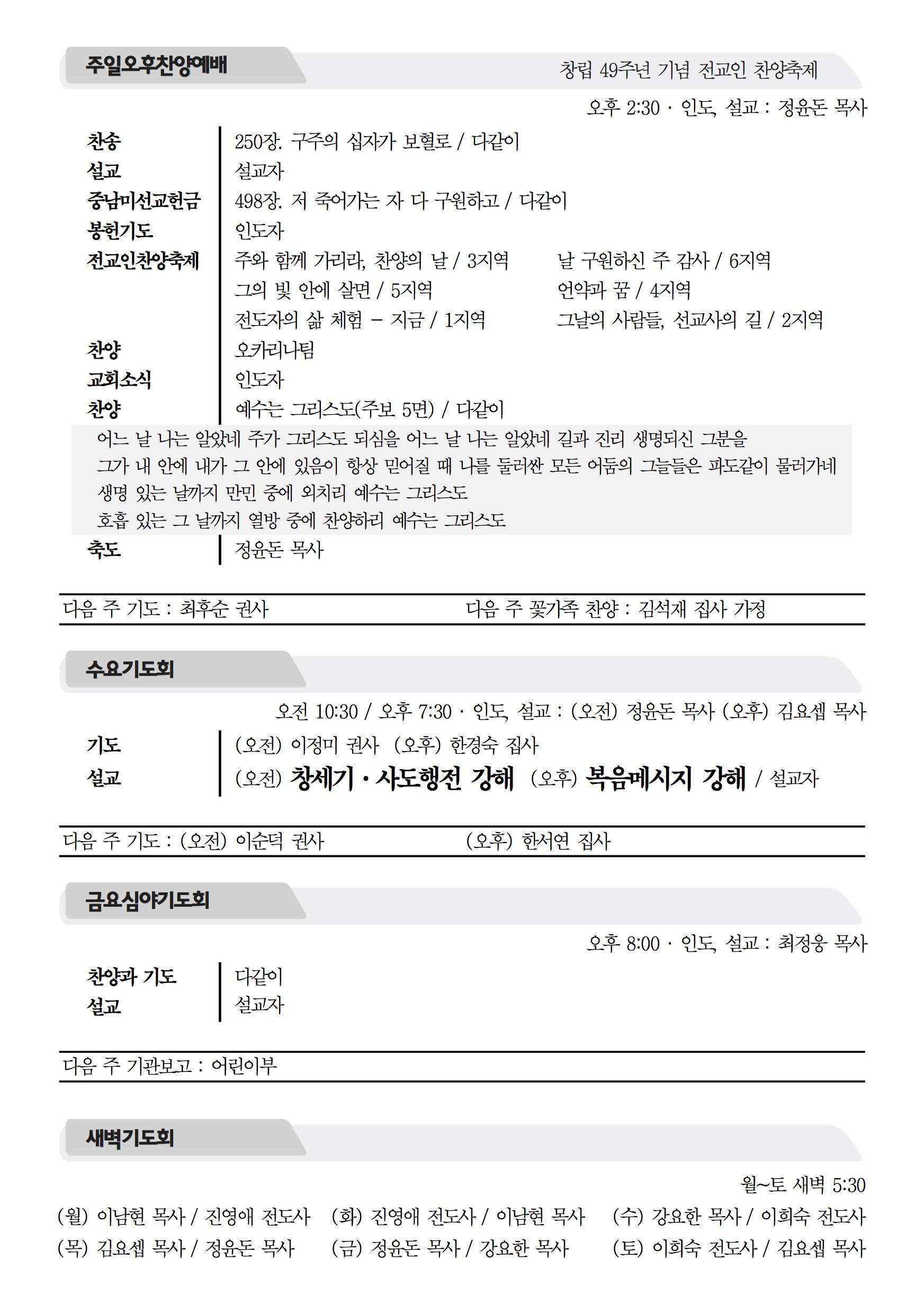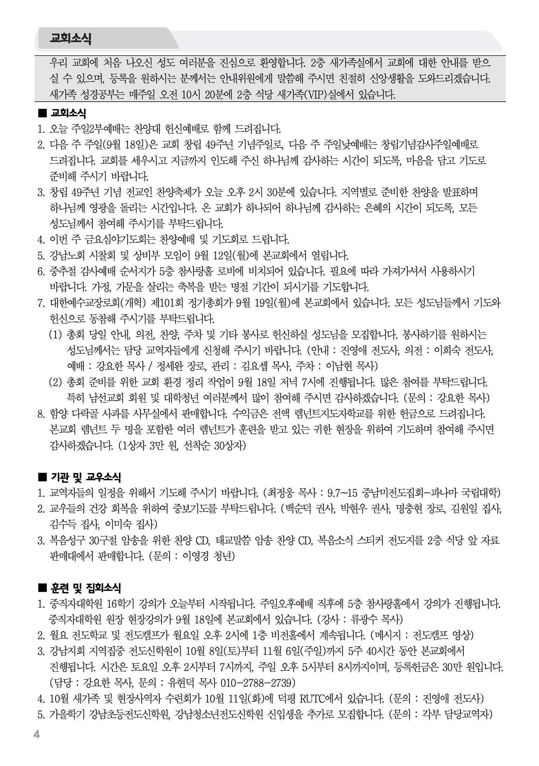 2016년 9월 11일 주보 2016년 9월 11일 주보 붙잡을 언약 정리(창17:1-8) 표적을 주시는 이유(출10:1-2, 막8:27-38) 2016년 9월 11일 주보 Posted on 2016년 9월 10일 in 주보 제 49권 37호 2016년 9월 11일 주보 주보 보기(PDF) Share this article: About truelove Related Articles 2015년 11월 15일 주보 2023년 7월 9일 주보 2024년 3월 17일 주보 2020년 4월 5일 주보