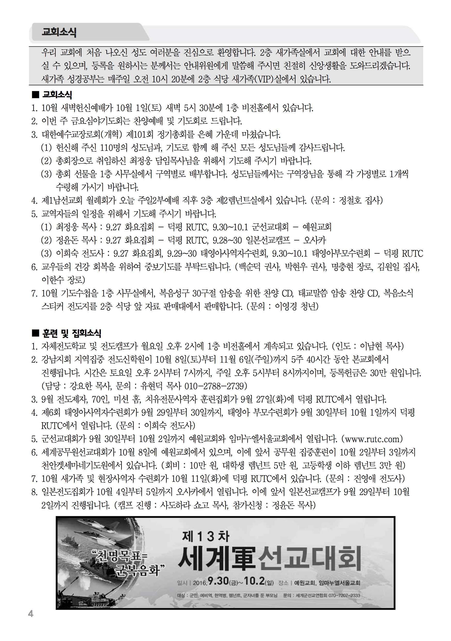 2016년 9월 25일 주보 2016년 9월 25일 주보 주의 피로 사신 교회(행20:28) 천명을 감당하는 총회, 제101회 예장개혁 총회. 2016년 9월 25일 주보 Posted on 2016년 9월 24일 in 주보 제 49권 39호 2016년 9월 25일 주보 주보 보기(PDF) Share this article: About truelove Related Articles 2017년 9월 10일 주보 2023년 9월 3일 주보 2022년 2월 27일 주보 2015년 10월 18일 주보