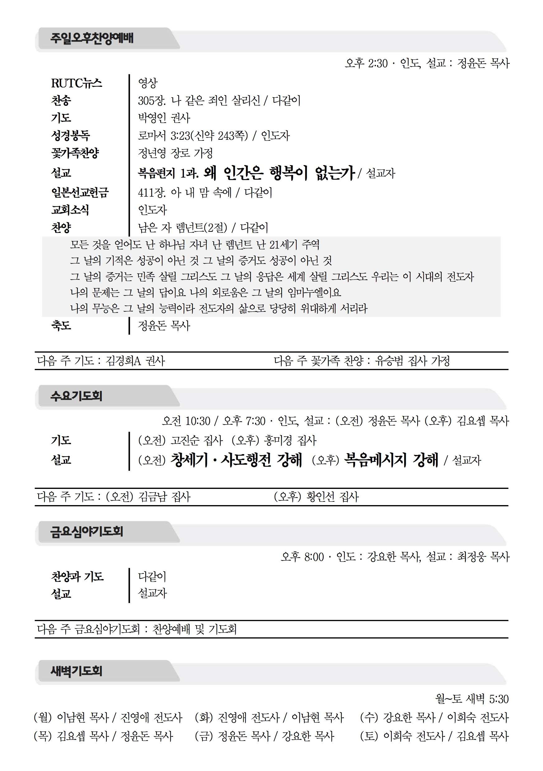 2016년 10월 2일 주보 2016년 10월 2일 주보 푯대를 향하여(빌3:12-14) 기도하면 응답하시는 하나님(렘29:10-14) 2016년 10월 2일 주보 Posted on 2016년 10월 1일 in 주보 제 49권 40호 2016년 10월 2일 주보 주보 보기(PDF) Share this article: About truelove Related Articles 2023년 3월 5일 주보 2015년 8월 16일 주보 2020년 7월 5일 주보 2020년 2월 9일 주보