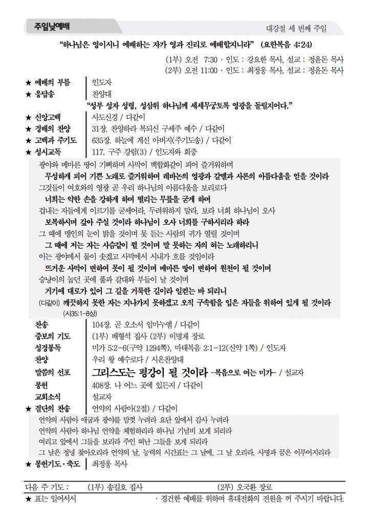 2016년 12월 11일 주보 2016년 12월 11일 주보 하나님을 사랑하라(막12:28-34) 아프리카 선교지에서 온 편지 2016년 12월 11일 주보 Posted on 2016년 12월 10일 in 주보 제 49권 50호 2016년 12월 11일 주보 주보 보기(PDF) Share this article: About truelove Related Articles 2024년 12월 8일 주보 2020년 4월 5일 주보 2017년 2월 26일 주보 2026년 2월 8일 주보