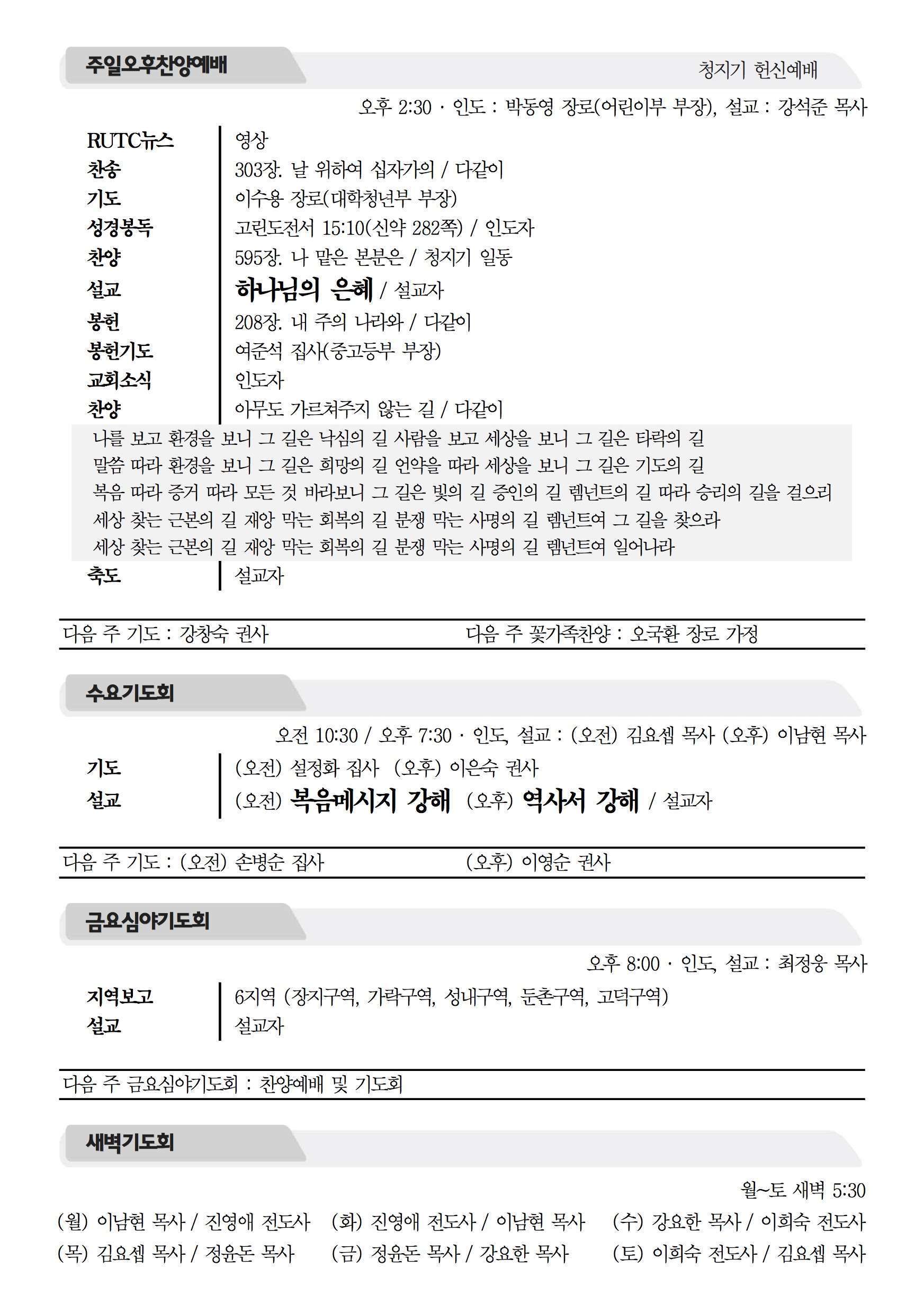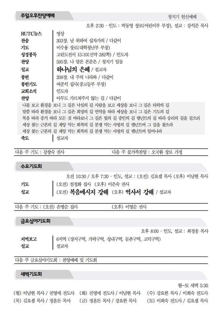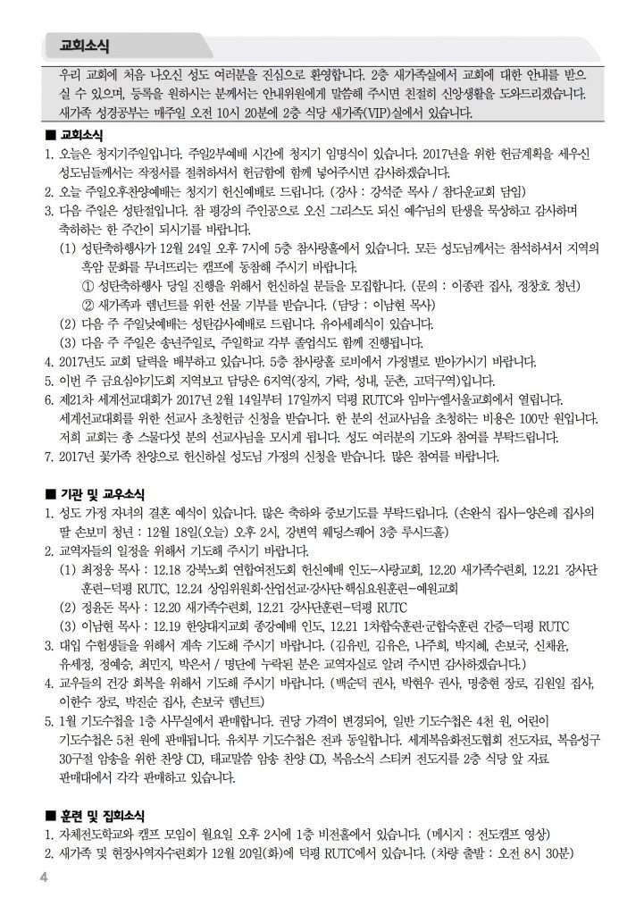 2016년 12월 18일 주보 2016년 12월 18일 주보 사회를 치유하는 남은 자 운동(미4:1-10) 2016 참사랑 라디오스타에 당신을 초대합니다. 2016년 12월 18일 주보 Posted on 2016년 12월 17일 in 주보 제 49권 51호 2016년 12월 18일 주보 주보 보기(PDF) Share this article: About truelove Related Articles 2024년 12월 22일 주보 2019년 4월 28일 주보 2023년 1월 22일 주보 2016년 11월 6일 주보
