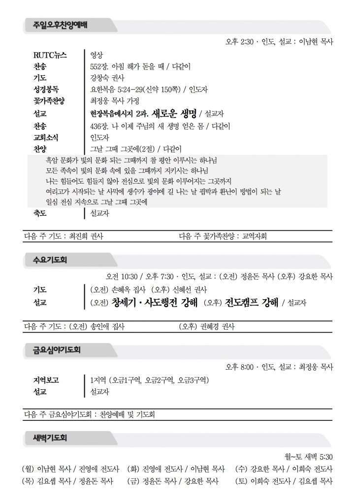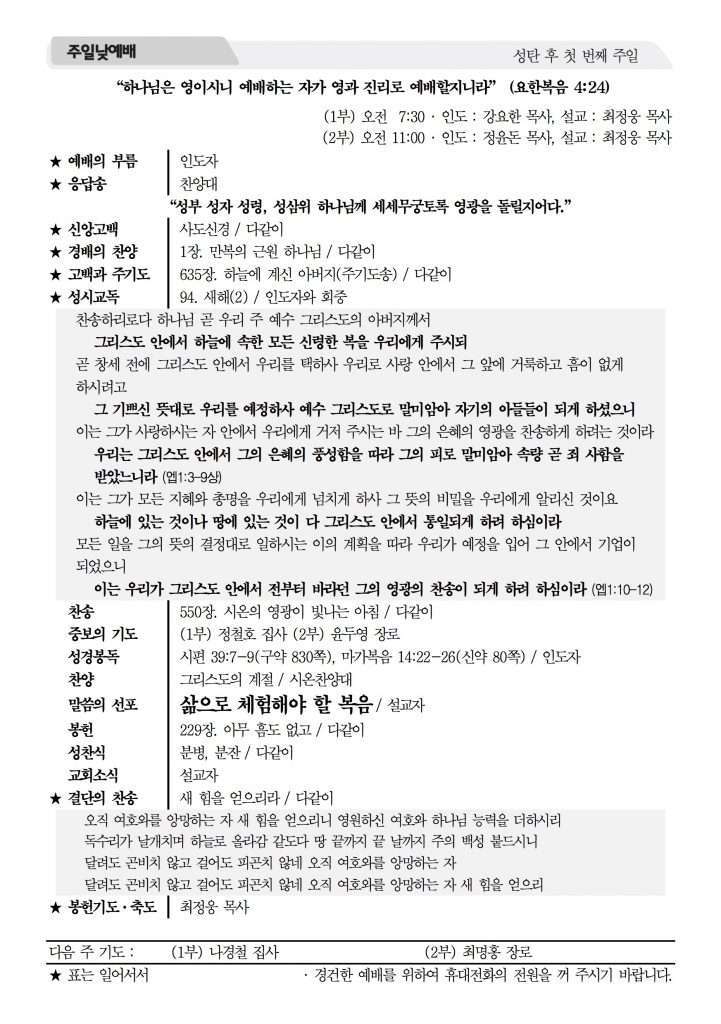 2017년 1월 1일 주보 2017년 1월 1일 주보 언약을 후대에게 전달하는 교회(신6:4-9, 요21:15-18) 대학청년부 송년의 밤 2017년 1월 1일 주보 Posted on 2016년 12월 31일 in 주보 제 50권 1호 2017년 1월 1일 주보 주보 보기(PDF) Share this article: About truelove Related Articles 2019년 2월 24일 주보 2018년 4월 22일 주보 2018년 3월 11일 주보 2023년 10월 15일 주보