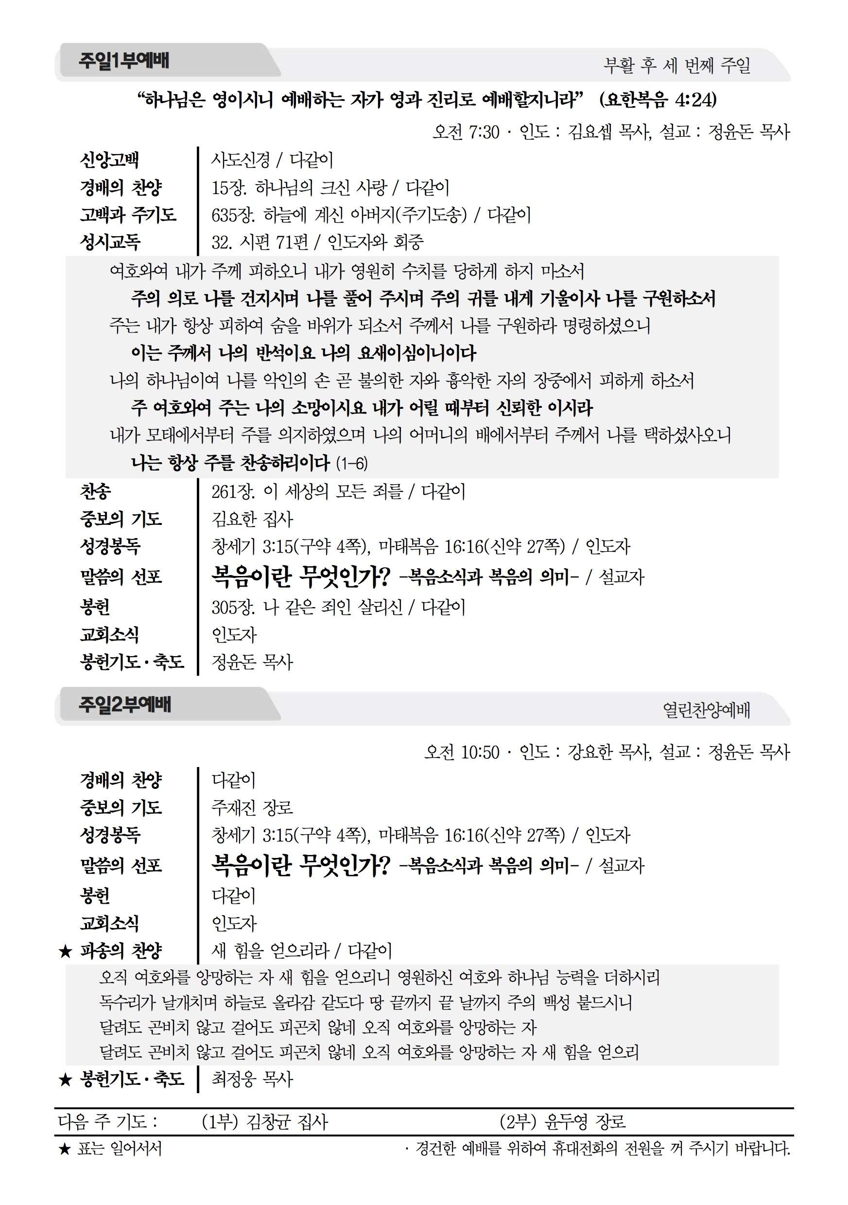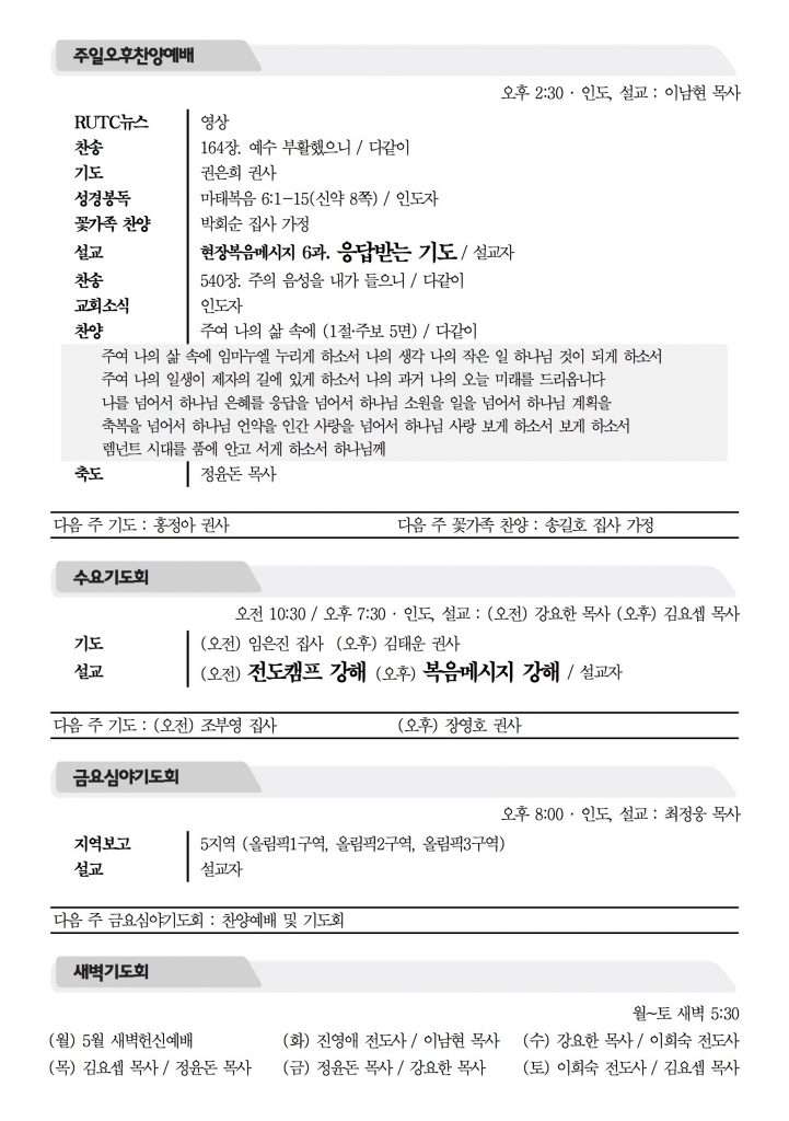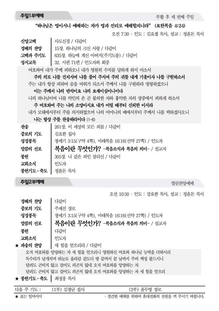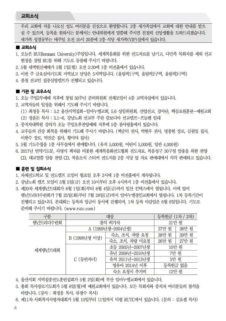 2017년 4월 30일 주보 2017년 4월 30일 주보 렘넌트의 모델(고전10:31-11:1) 더 많은 사람을 얻고자 함이라(레19:15-18, 고전9:19-27) 2017년 4월 30일 주보 Posted on 2017년 4월 29일 in 주보 제 50권 18호 2017년 4월 30일 주보 주보 보기(PDF) Share this article: About truelove Related Articles 2019년 4월 21일 주보 2022년 2월 27일 주보 2014년 11월 30일 주보 2016년 10월 30일 주보