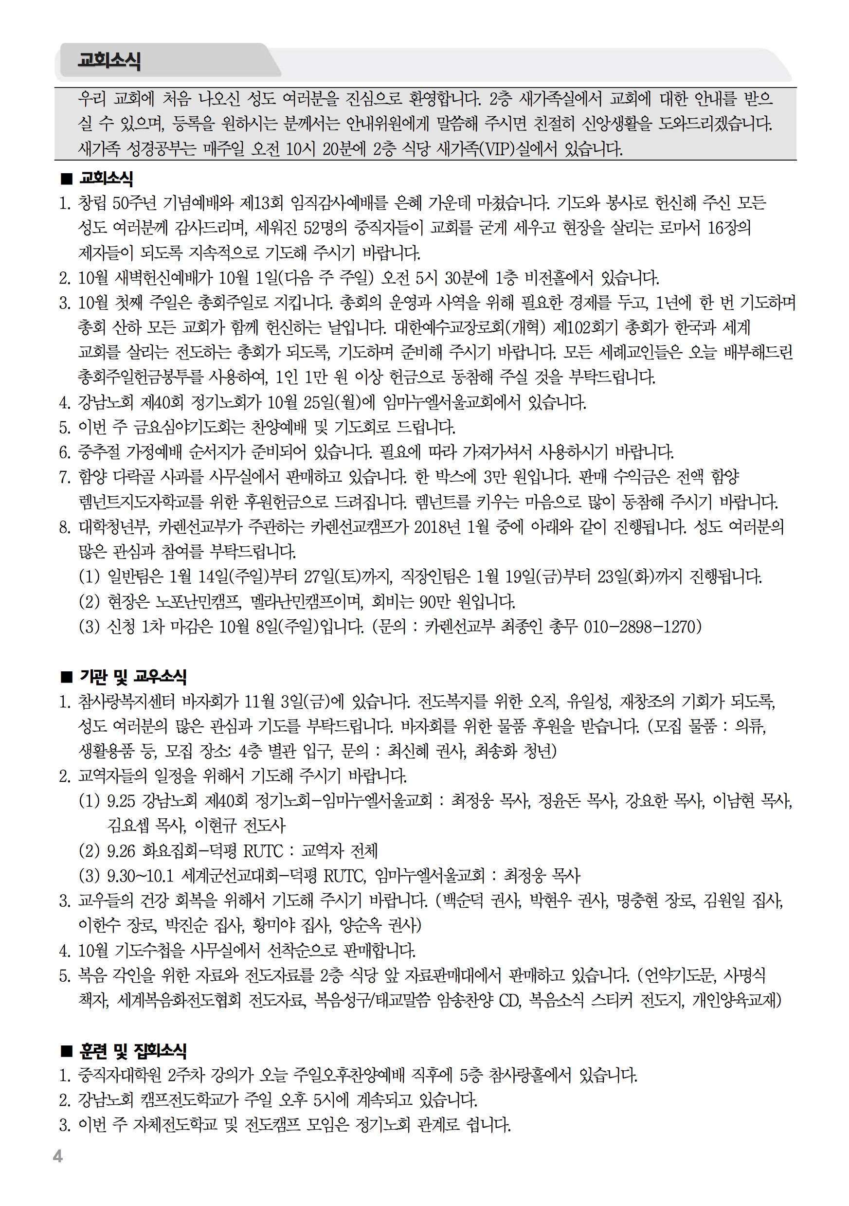 2017년 9월 24일 주보 2017년 9월 24일 주보 끝나지 않은 사명(빌3:10-14) 그리스도로 끝(결론)(눅10:17-20) 2017년 9월 24일 주보 Posted on 2017년 9월 23일 in 주보 제 50권 39호 2017년 9월 24일 주보 주보 보기(PDF) Share this article: About truelove Related Articles 2023년 3월 19일 주보 2020년 1월 26일 주보 2025년 10월 19일 주보 2018년 5월 6일 주보