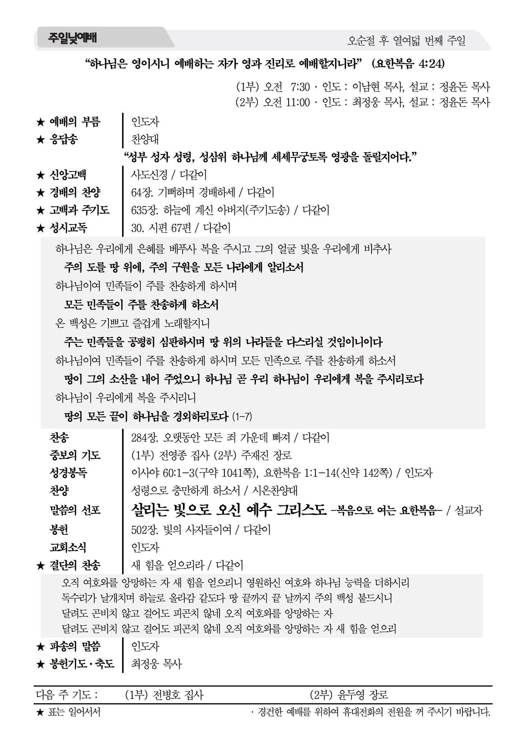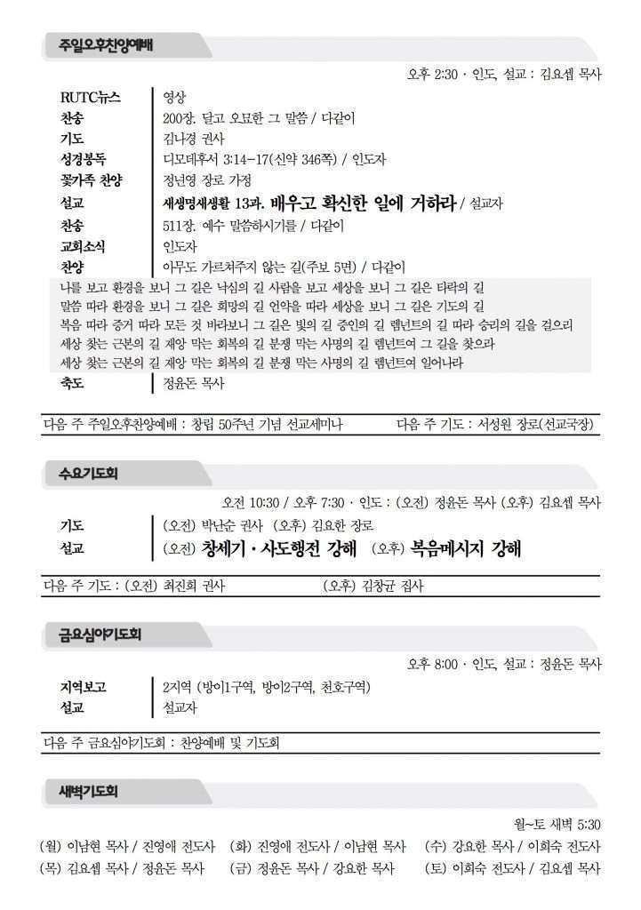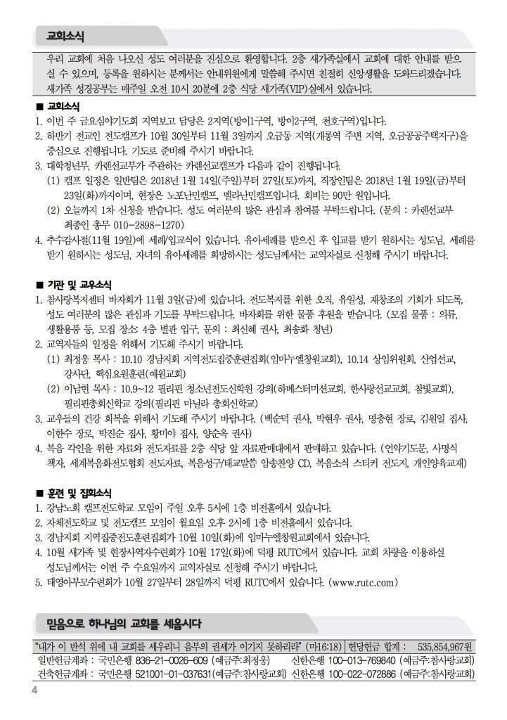 2017년 10월 8일 주보 2017년 10월 8일 주보 성도의 신분과 권세(창1:26-28) 천명, 소명, 사명 – 세상 위기 막을 자들(마24:1-14) 2017년 10월 8일 주보 Posted on 2017년 10월 7일 in 주보 제 50권 41호 2017년 10월 8일 주보 주보 보기(PDF) Share this article: About truelove Related Articles 2018년 12월 16일 주보 2021년 1월 24일 주보 2022년 6월 19일 주보 2019년 5월 12일 주보