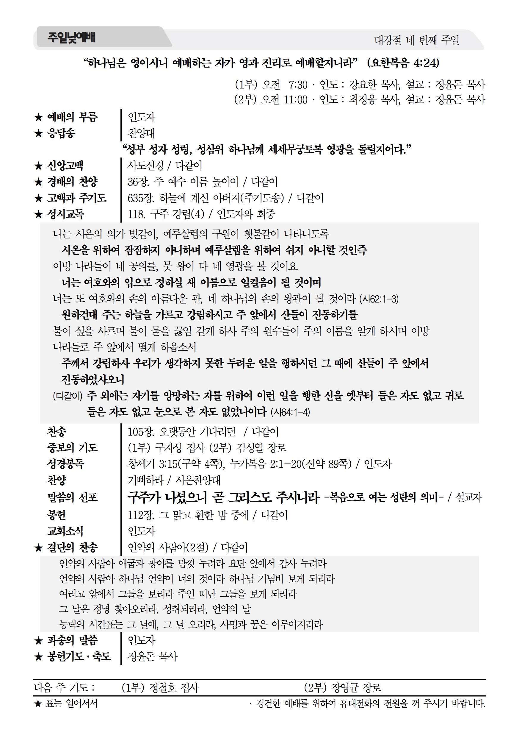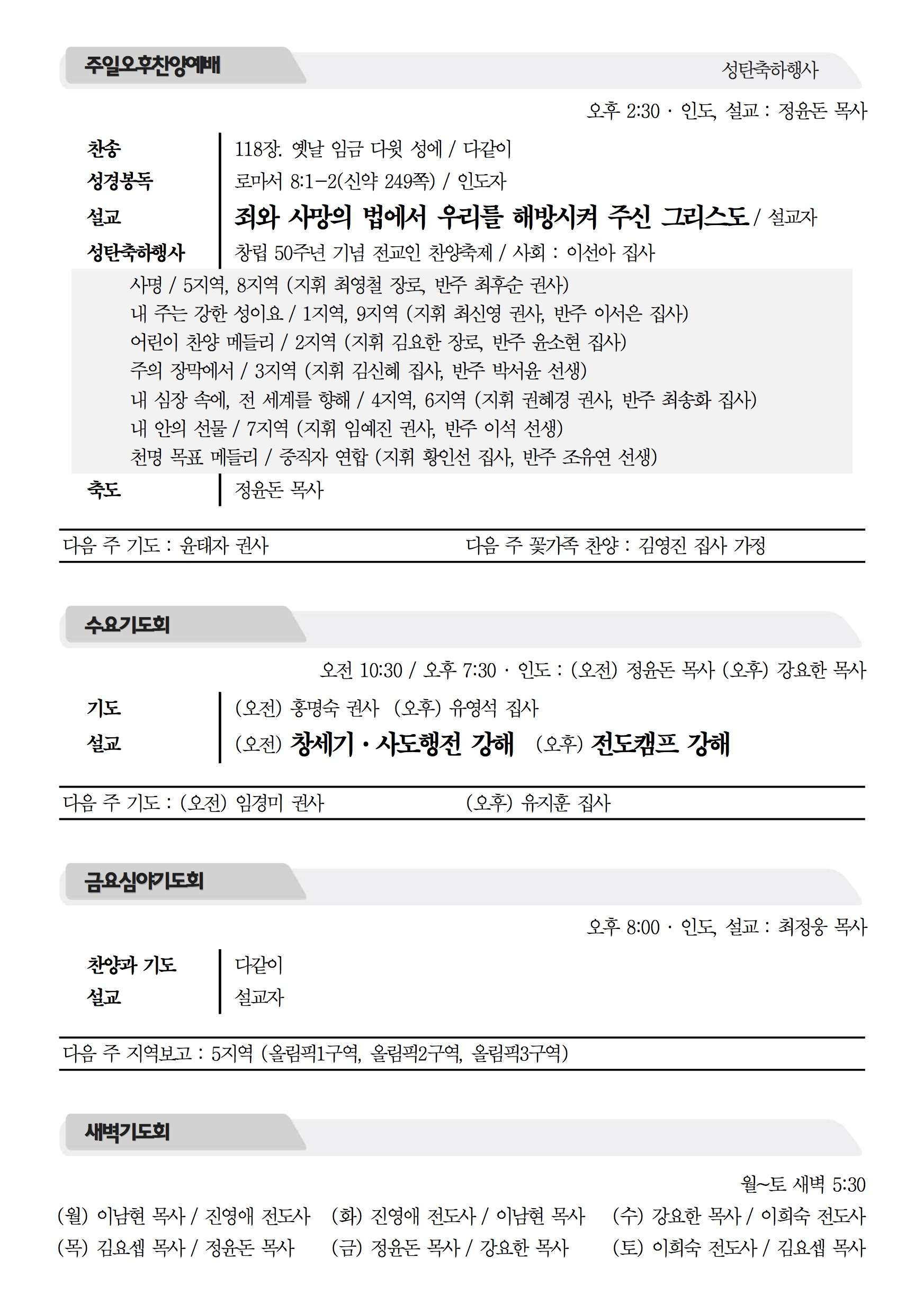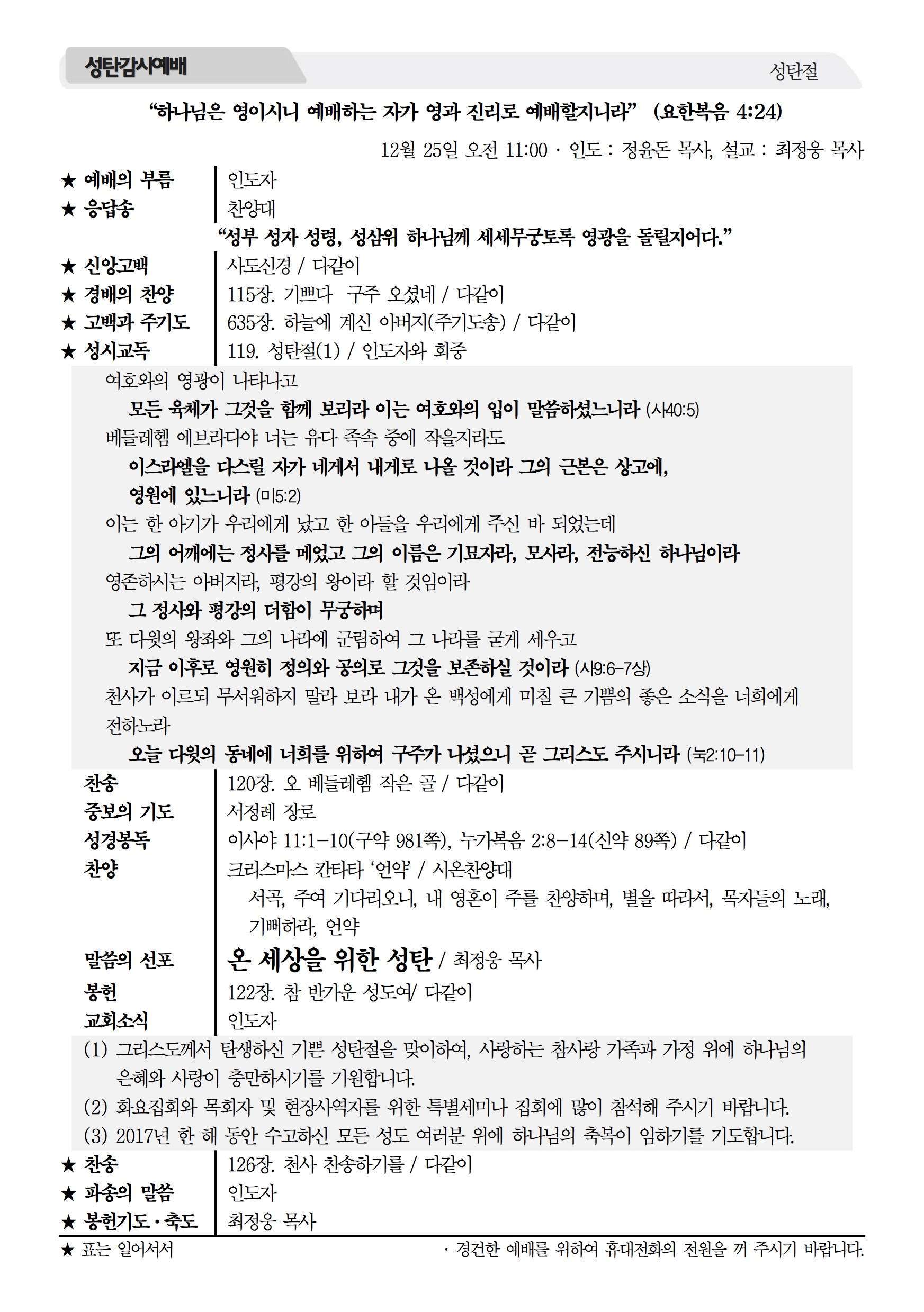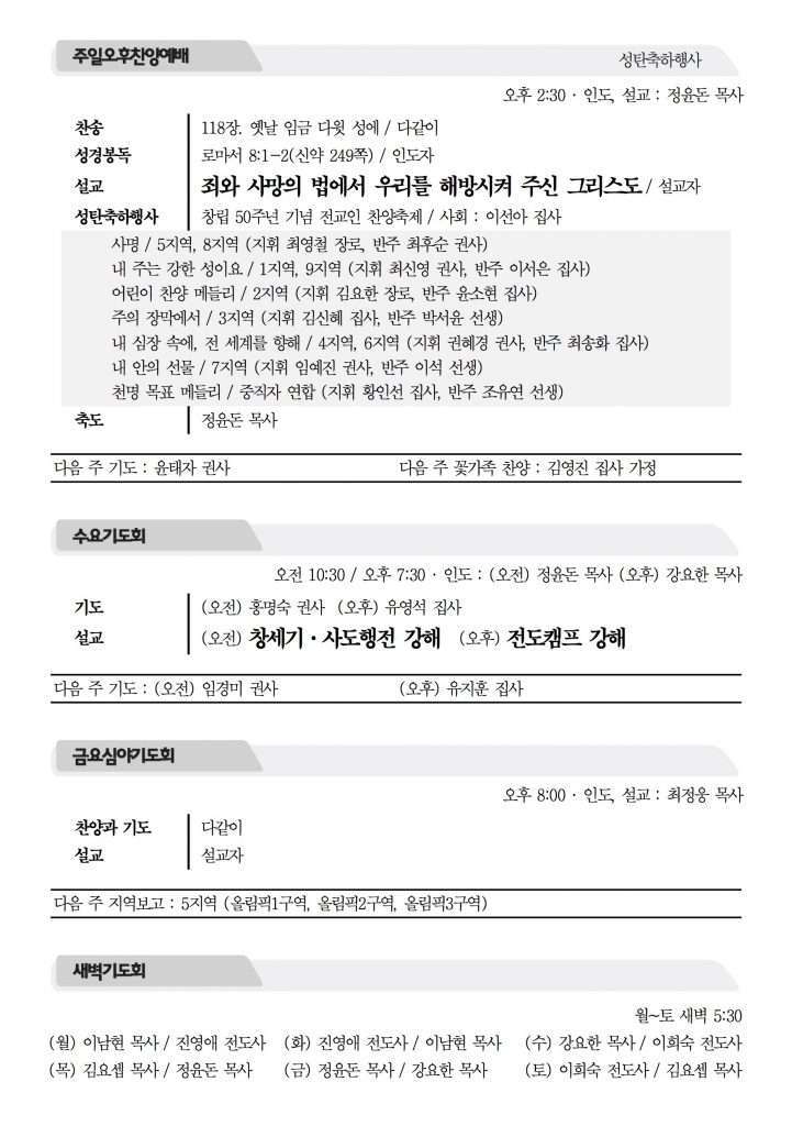 2017년 12월 24일 주보 2017년 12월 24일 주보 미래에 도전(행19:21) 교만과 실패, 그리고 막을 수 없는 하나님의 계획(왕하20:12-21) 2017년 12월 24일 주보 Posted on 2017년 12월 23일 in 주보 제 50권 52호 2017년 12월 24일 주보 주보 보기(PDF) Share this article: About truelove Related Articles 2023년 4월 9일 주보 2023년 2월 26일 주보 2019년 7월 14일 주보 2022년 8월 21일 주보