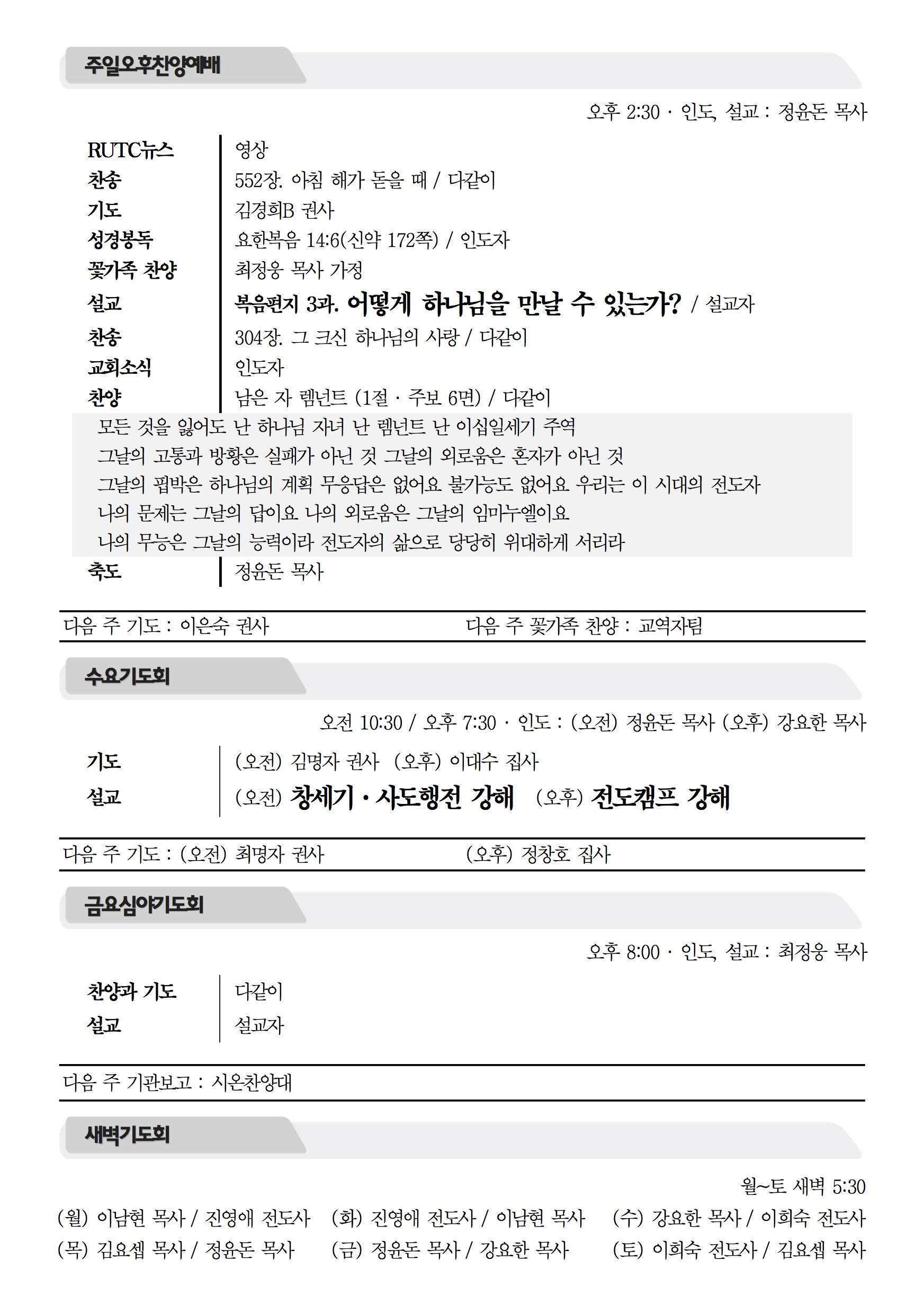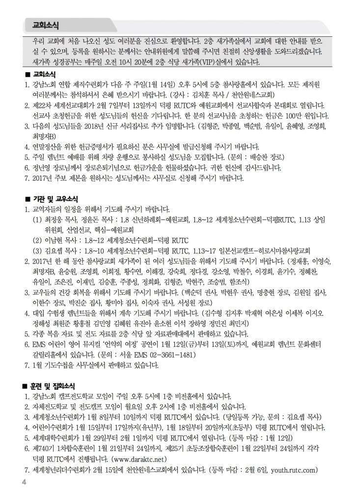 2018년 1월 7일 주보 2018년 1월 7일 주보 홀로 살아남는 비밀(창39:1-23) 하나님을 기쁘시게 하는 교회(삼하6:12-21) 2018년 1월 7일 주보 Posted on 2018년 1월 6일 in 주보 제 51권 1호 2018년 1월 7일 주보 주보 보기(PDF) Share this article: About truelove Related Articles 2024년 7월 14일 주보 2025년 6월 15일 주보 2023년 6월 18일 주보 2021년 11월 21일 주보