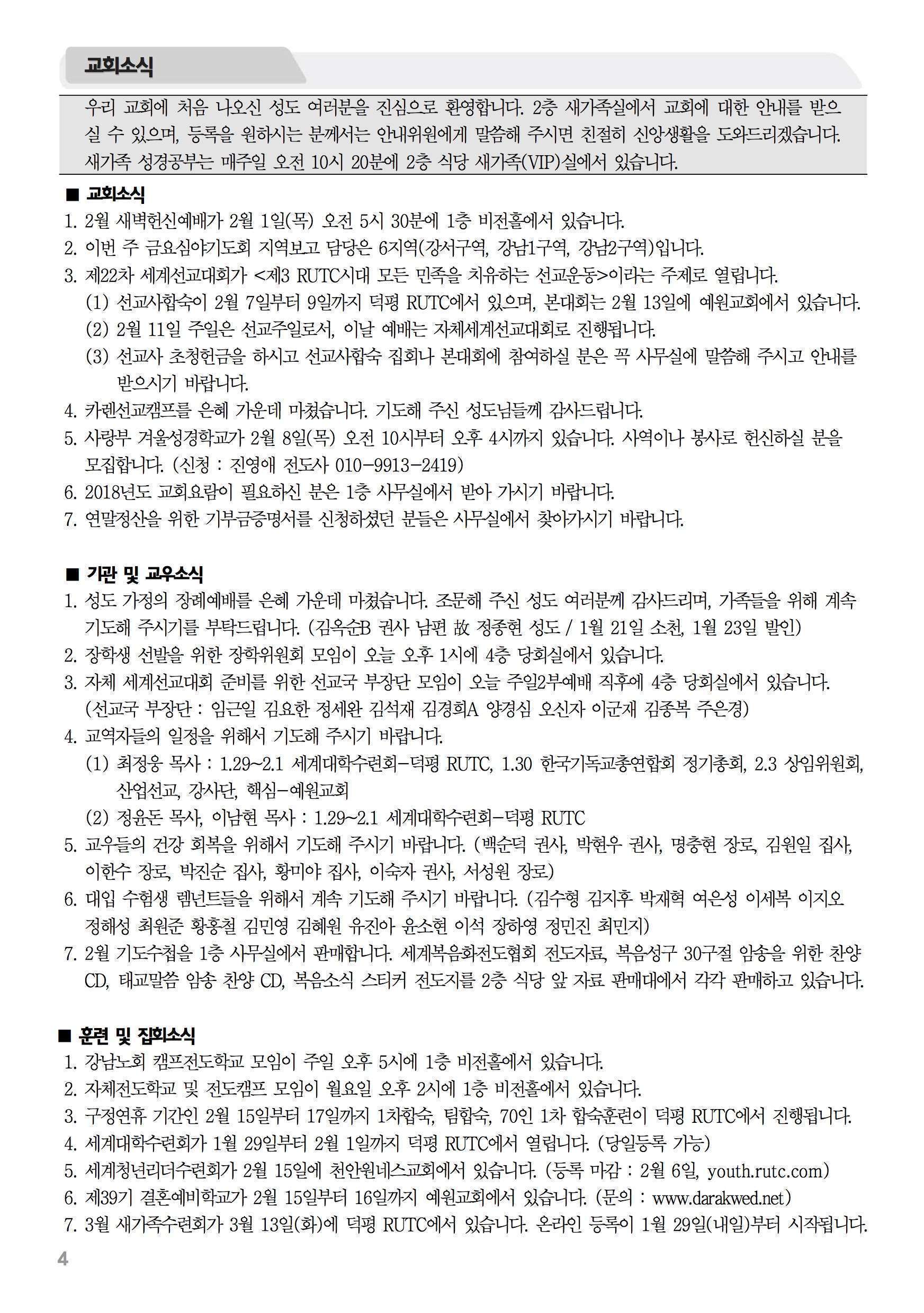 2018년 1월 28일 주보 2018년 1월 28일 주보 결단(행27:24) 확신 – 복음(수1:1-9) 2018년 1월 28일 주보 Posted on 2018년 1월 27일 in 주보 제 51권 4호 2018년 1월 28일 주보 주보 보기(PDF) Share this article: About truelove Related Articles 2024년 8월 18일 주보 2017년 4월 16일 주보 2022년 7월 31일 주보 2025년 6월 8일 주보