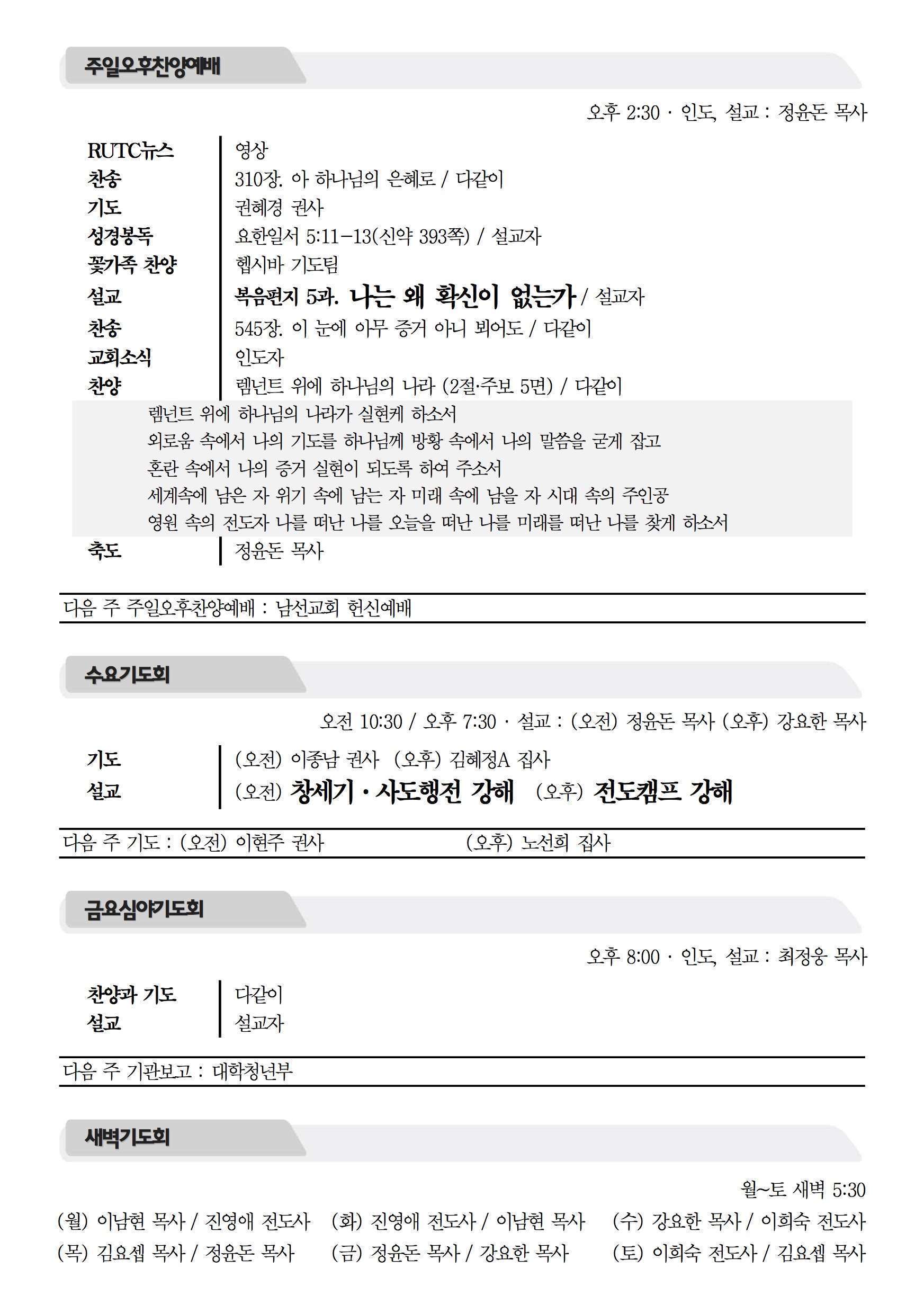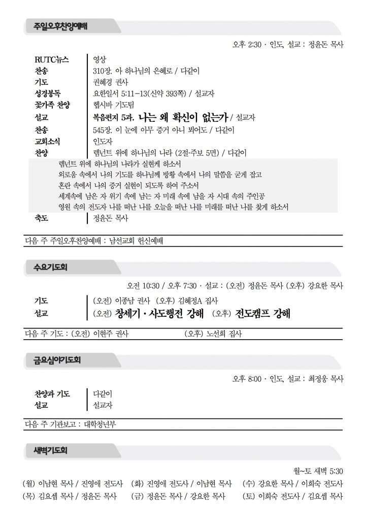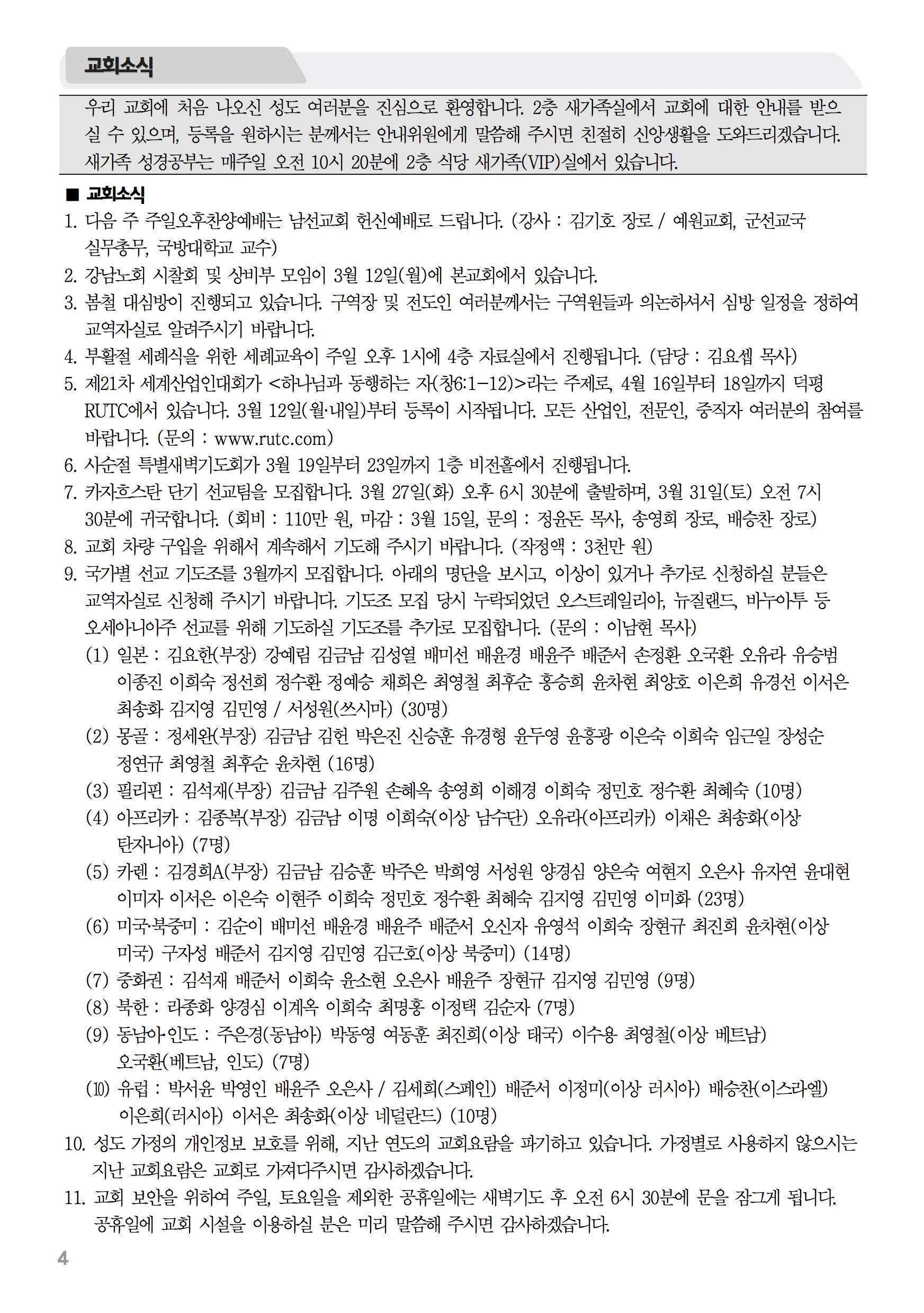 2018년 3월 11일 주보 2018년 3월 11일 주보 전도자가 받을 응답(고후5:11-21) 전도자가 이해해야 할 교회 역사(마16:13-20) 2018년 3월 11일 주보 Posted on 2018년 3월 10일 in 주보 제 51권 10호 2018년 3월 11일 주보 주보 보기(PDF) Share this article: About truelove Related Articles 2021년 7월 11일 주보 2016년 11월 13일 주보 2014년 10월 12일 주보 2017년 2월 12일 주보