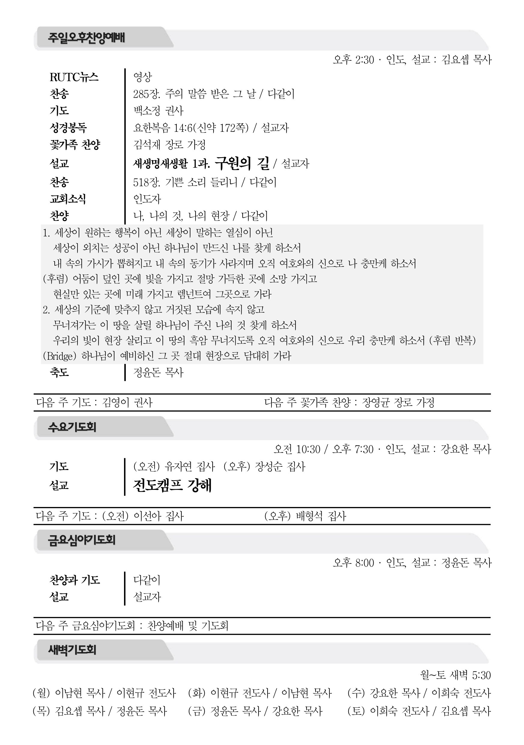 2018년 7월 22일 주보 2018년 7월 22일 주보 언약 전달을 위한 기도(딤후1:5) 창조와 임신 ; 심히 기묘하신 하나님의 능력(시139:13-16) 2018년 7월 22일 주보 Posted on 2018년 7월 21일 in 주보 제 51권 29호 2018년 7월 22일 주보 주보 보기(PDF) Share this article: About truelove Related Articles 2018년 11월 11일 주보 2025년 3월 16일 주보 2025년 3월 30일 주보 2023년 4월 23일 주보