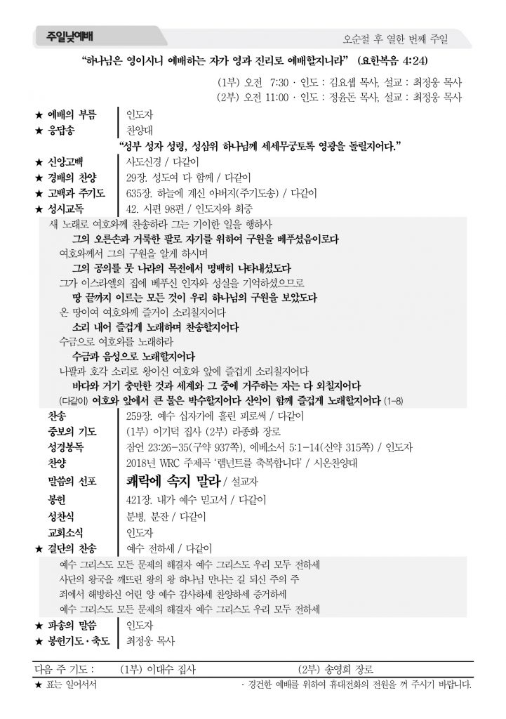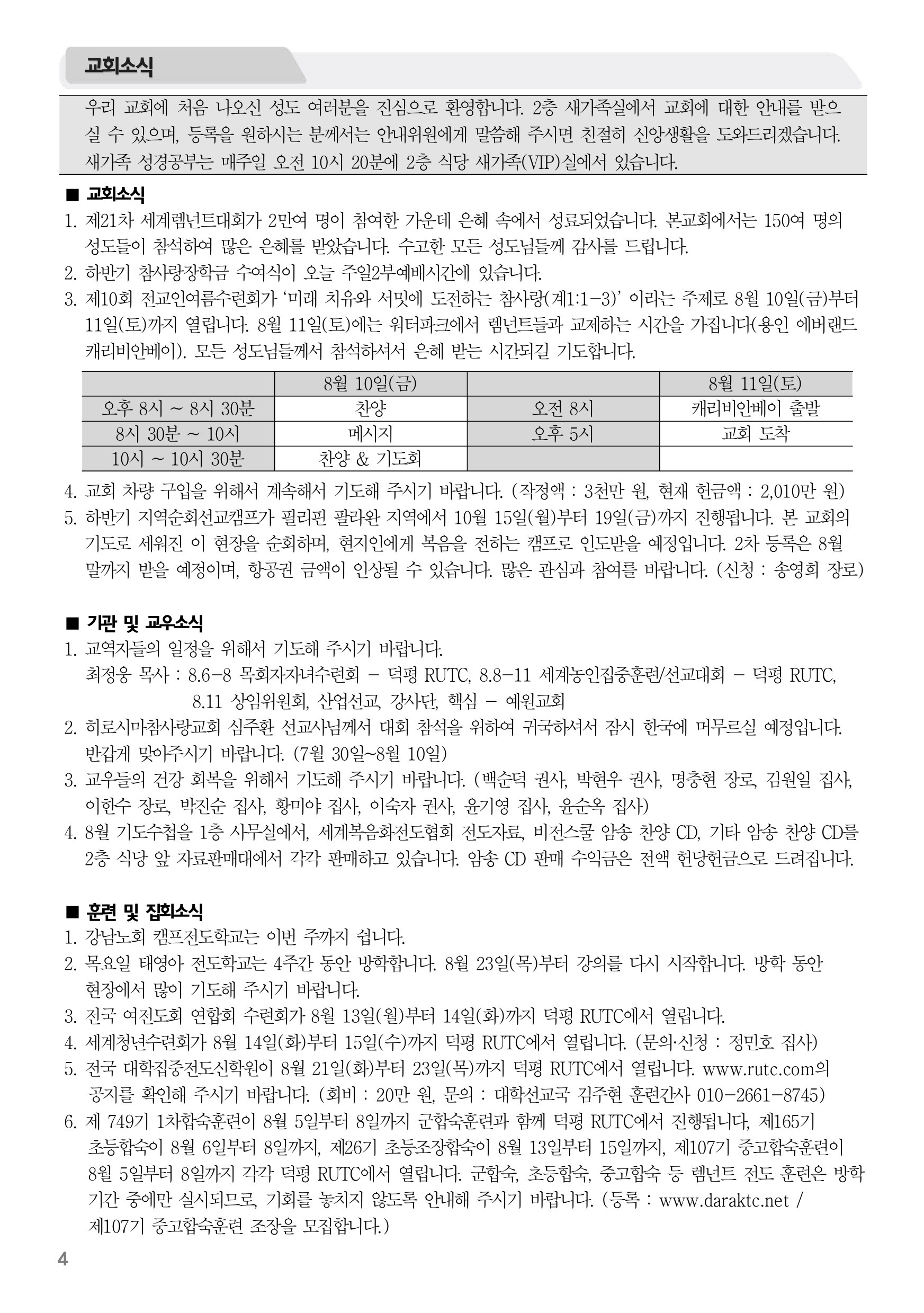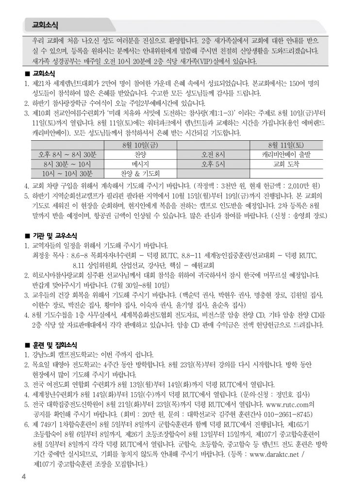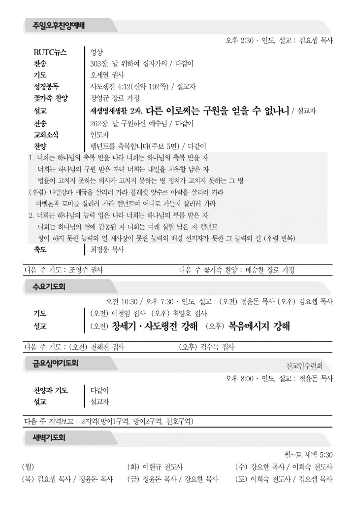 2018년 8월 5일 주보 2018년 8월 5일 주보 미래와 서밋치유를 위한 포럼(계1:1-3) 경건을 훈련하자(딤전4:6-11) 2018년 8월 5일 주보 Posted on 2018년 8월 4일 in 주보 제 51권 31호 2018년 8월 5일 주보 주보 보기(PDF) Share this article: About truelove Related Articles 2019년 12월 15일 주보 2017년 5월 28일 주보 2015년 6월 14일 주보 2017년 3월 26일 주보