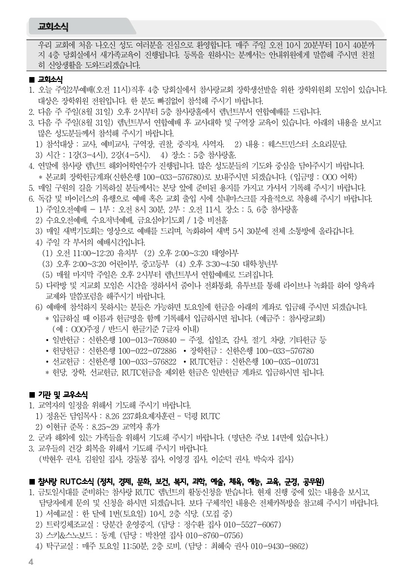 2025년 8월 24일 주보 2025년 8월 24일 주보 주의 이름으로 사탄에게 절대 속지말고 그리스도의 바른 제자로(겔28:12-13, 살후2:1-2) 2025년 8월 24일 주보 Posted on 2025년 8월 23일 in 주보 제 58권 34호 2025년 8월 24일 주보 주보 보기(PDF) Share this article: About truelove Related Articles 2017년 10월 22일 주보 2015년 12월 6일 주보 2020년 11월 8일 주보 2022년 1월 2일 주보