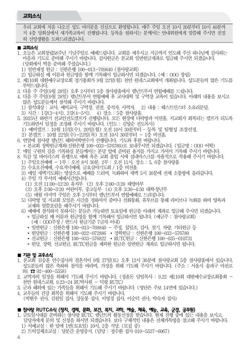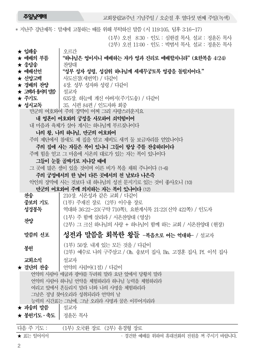 2025년 9월 21일 주보 2025년 9월 21일 주보 주 함께 살리라 말세에 고통하는 때를 위해 부탁하신 말씀(시119:105, 딤후3:16-17) 2025년 9월 21일 주보 Posted on 2025년 9월 20일 in 주보 제 58권 38호 2025년 9월 21일 주보 주보 보기(PDF) Share this article: About truelove Related Articles 2021년 6월 20일 주보 2024년 6월 9일 주보 2019년 3월 24일 주보 2016년 7월 10일 주보