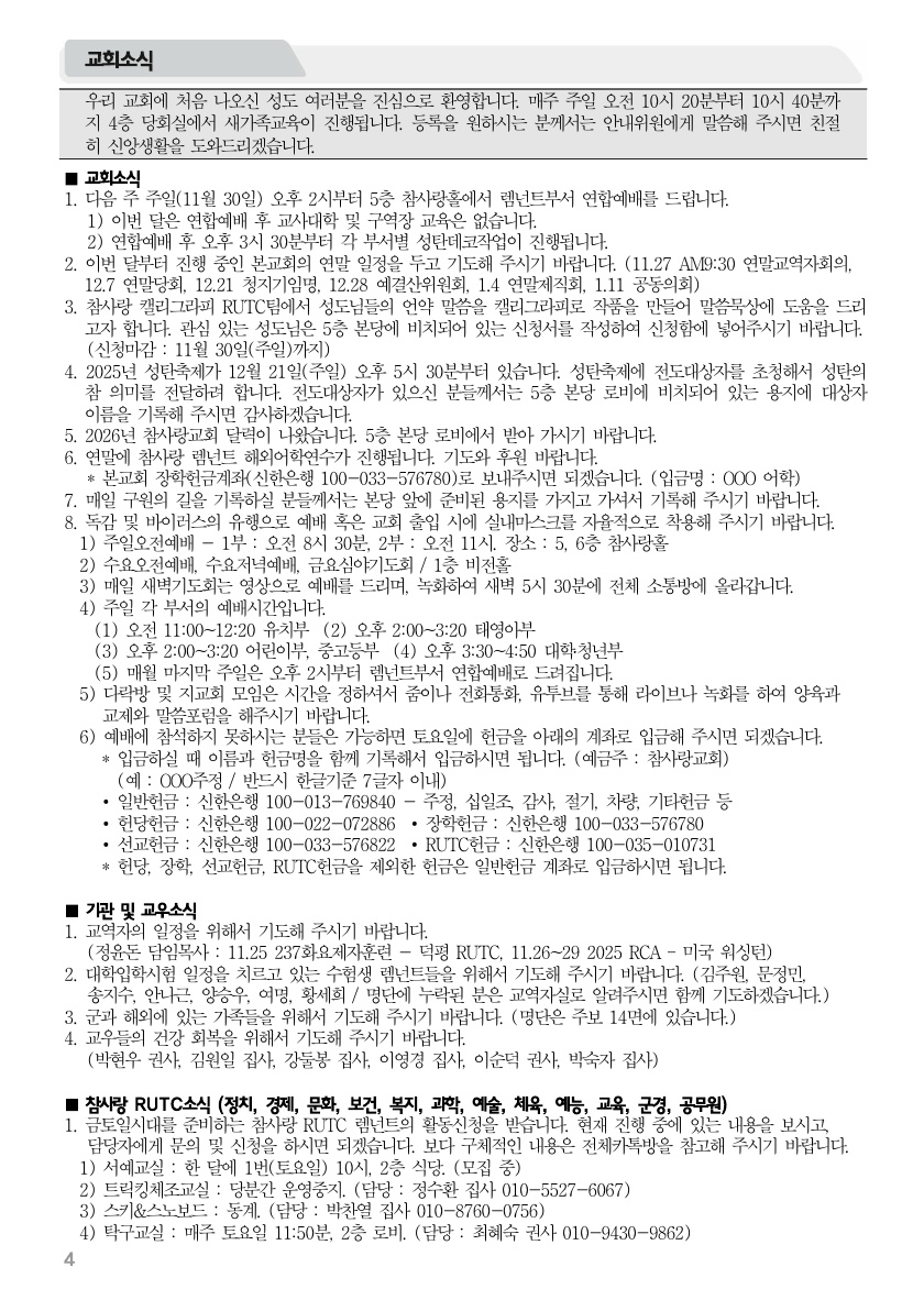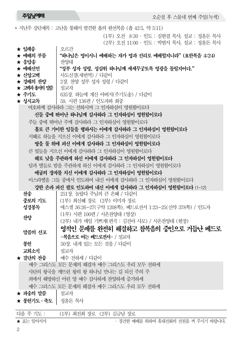 2025년 11월 23일 주보 2025년 11월 23일 주보 내가 매일 기쁘게 고난을 통해서 발견한 욥의 완전복음(욥42:5, 약5:11) 2025년 11월 23일 주보 Posted on 2025년 11월 22일 in 주보 제 58권 47호 2025년 11월 23일 주보 주보 보기(PDF) Share this article: About truelove Related Articles 2021년 10월 3일 주보 2017년 2월 5일 주보 2022년 3월 27일 주보 2023년 9월 17일 주보