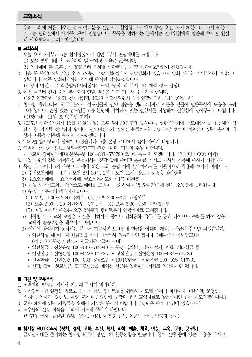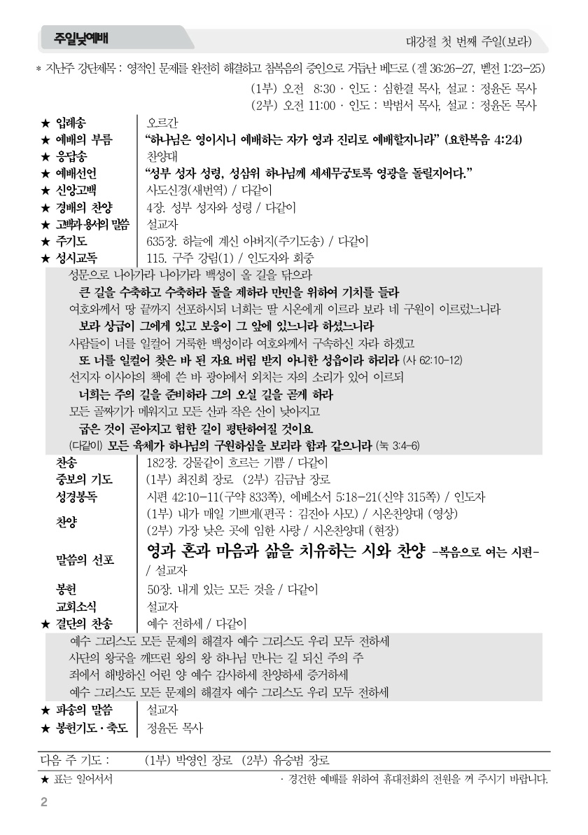 2025년 11월 30일 주보 2025년 11월 30일 주보 가장 낮은 곳에 임한 사랑 영적인 문제를 완전히 해결하고 참복음의 증인으로 거듭난 베드로(겔36:26-27, 벧전1:23-25) 2025년 11월 30일 주보 Posted on 2025년 11월 29일 in 주보 제 58권 48호 2025년 11월 30일 주보 주보 보기(PDF) Share this article: About truelove Related Articles 2021년 9월 12일 주보 2024년 2월 18일 주보 2019년 6월 2일 주보 2016년 2월 21일 주보