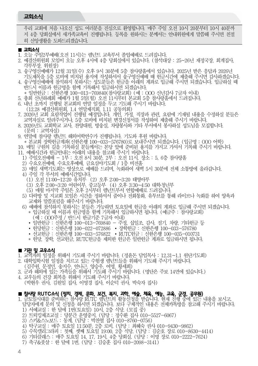 2025년 12월 28일 주보 2025년 12월 28일 주보 영원한 빛이 임하신 날 영혼을 살리는 참진리와 참사랑(사7:14, 요일4:7-11) 2025년 12월 28일 주보 Posted on 2025년 12월 27일 in 주보 제 58권 52호 2025년 12월 28일 주보 주보 보기(PDF) Share this article: About truelove Related Articles 2020년 10월 25일 주보 2019년 10월 13일 주보 2016년 6월 5일 주보 2022년 1월 2일 주보