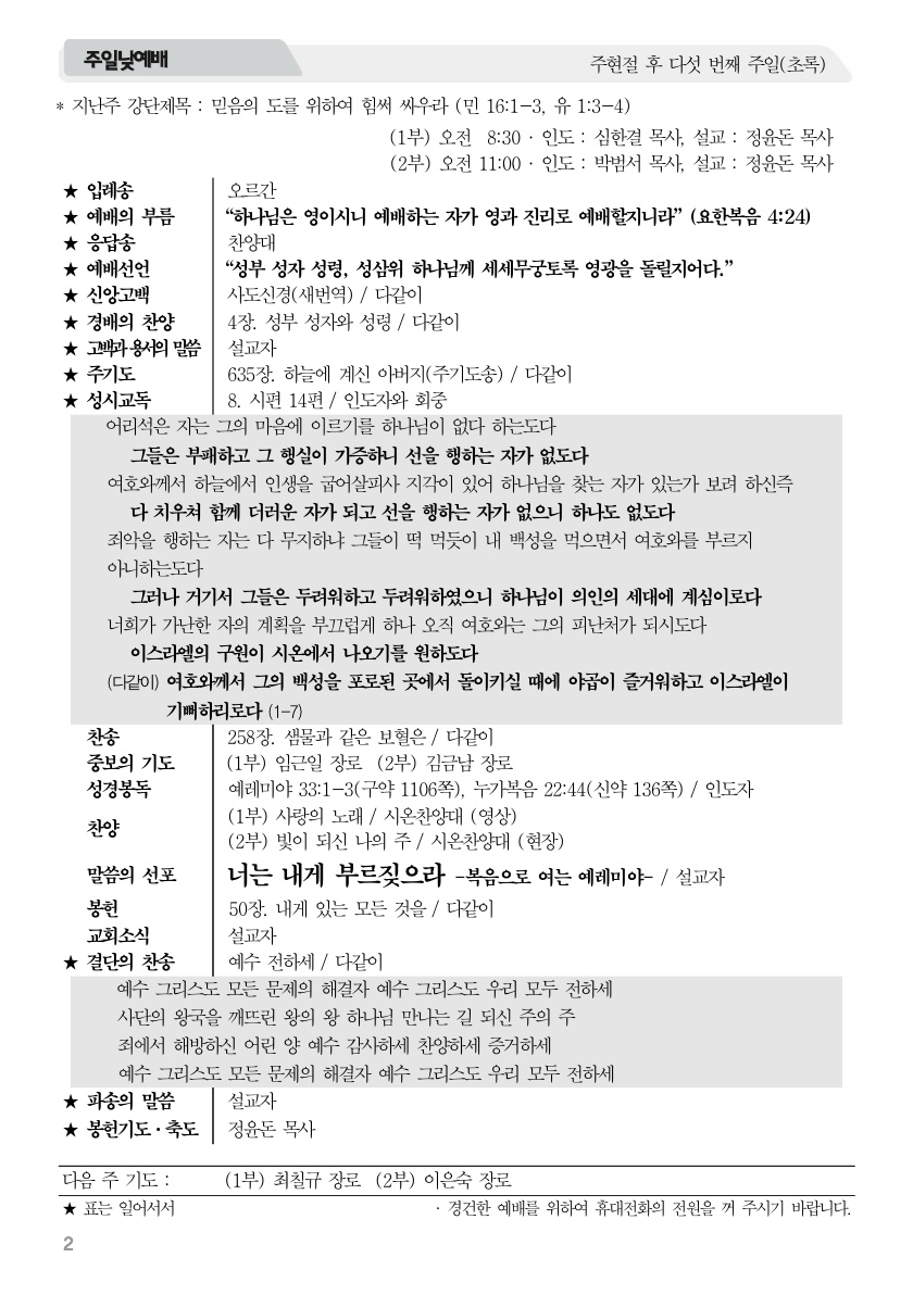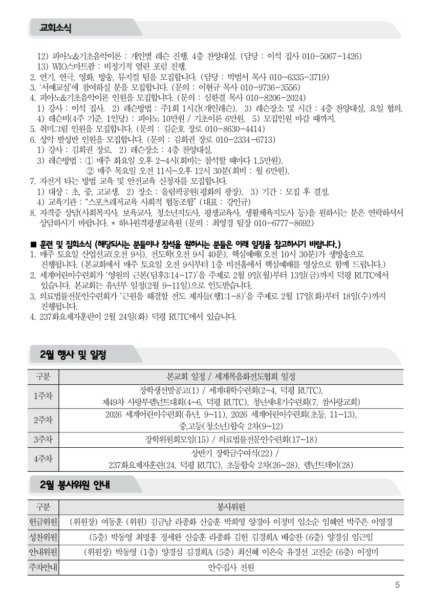 2026년 2월 8일 주보 2026년 2월 8일 주보 믿음의 도를 위하여 힘써 싸우라(민16:1-3, 유1:3-4) 2026년 2월 8일 주보 Posted on 2026년 2월 7일 in 주보 제 59권 6호 2025년 2월 8일 주보 주보 보기(PDF) Share this article: About truelove Related Articles 2023년 6월 4일 주보 2017년 6월 4일 주보 2026년 1월 18일 주보 2018년 3월 18일 주보