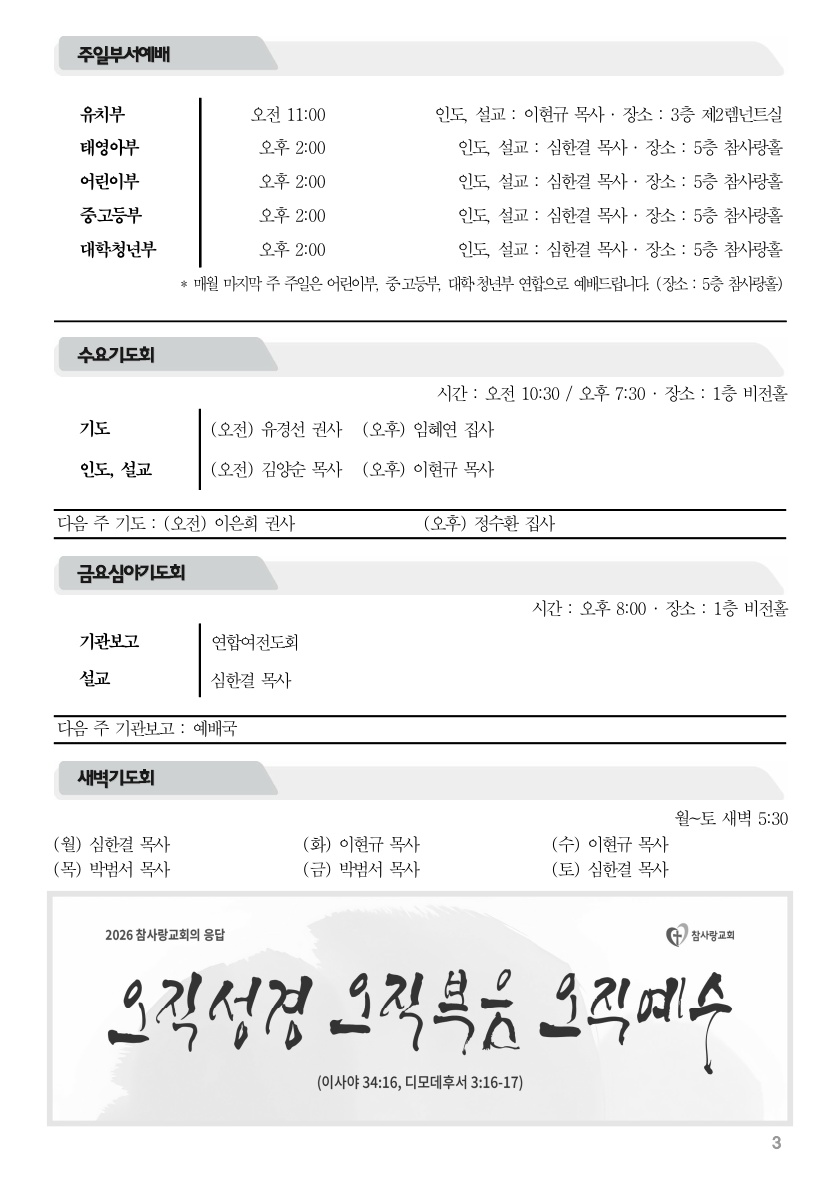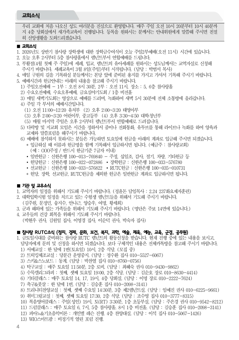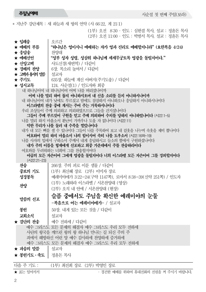 2026년 2월 22일 주보 2026년 2월 22일 주보 새 하늘과 새 땅의 언약(사66:22, 계21:1) 2026년 2월 22일 주보 Posted on 2026년 2월 21일 in 주보 제 59권 8호 2025년 2월 22일 주보 주보 보기(PDF) Share this article: About truelove Related Articles 2015년 3월 8일 주보 2019년 9월 8일 주보 2021년 11월 7일 주보 2021년 12월 5일 주보