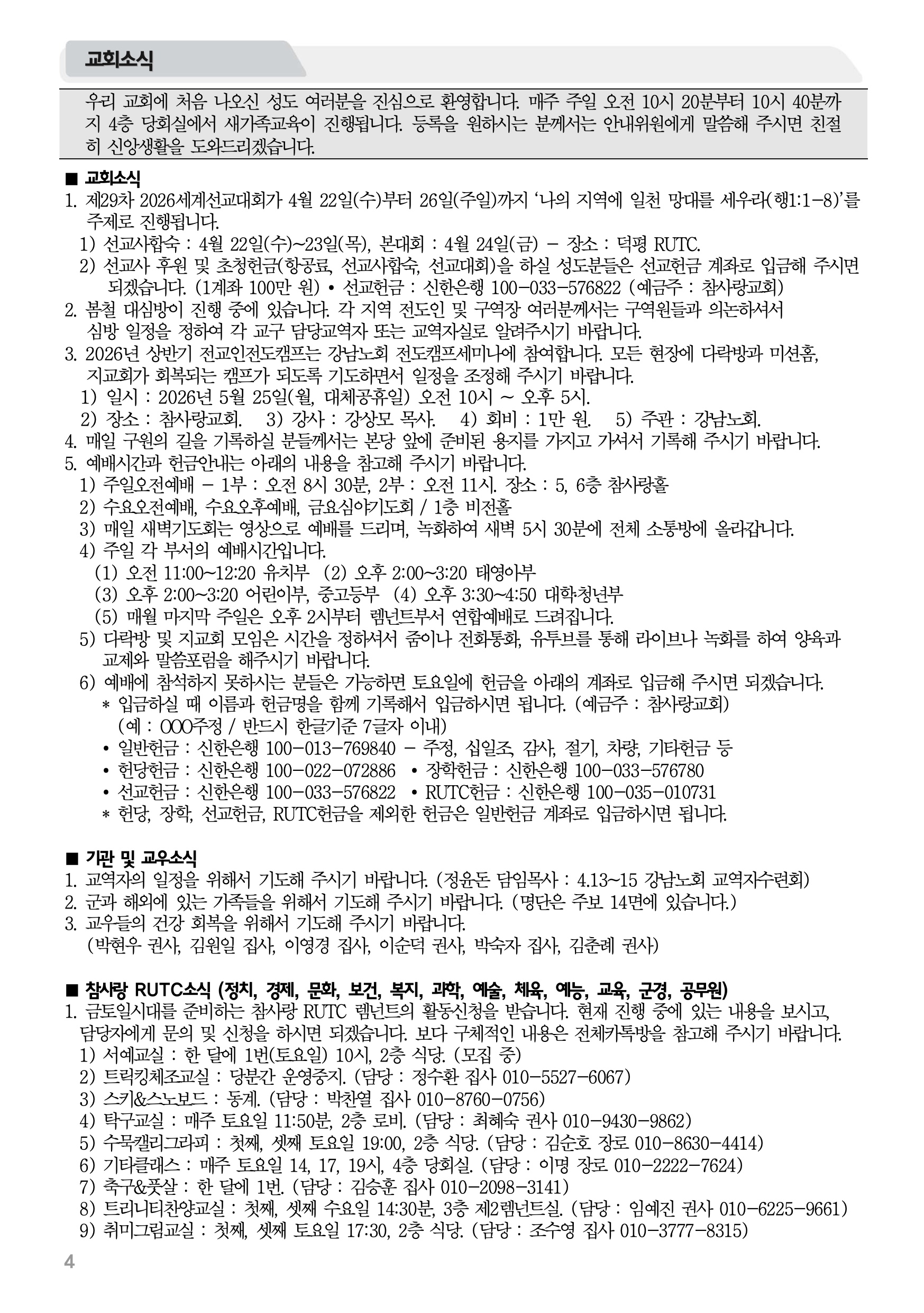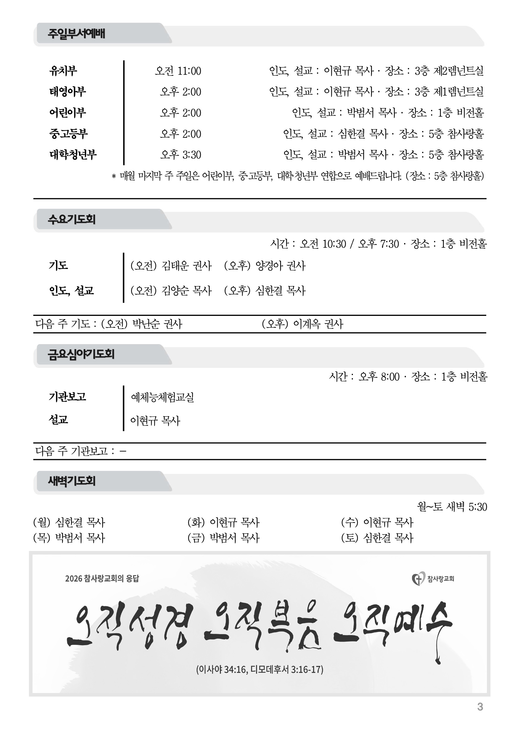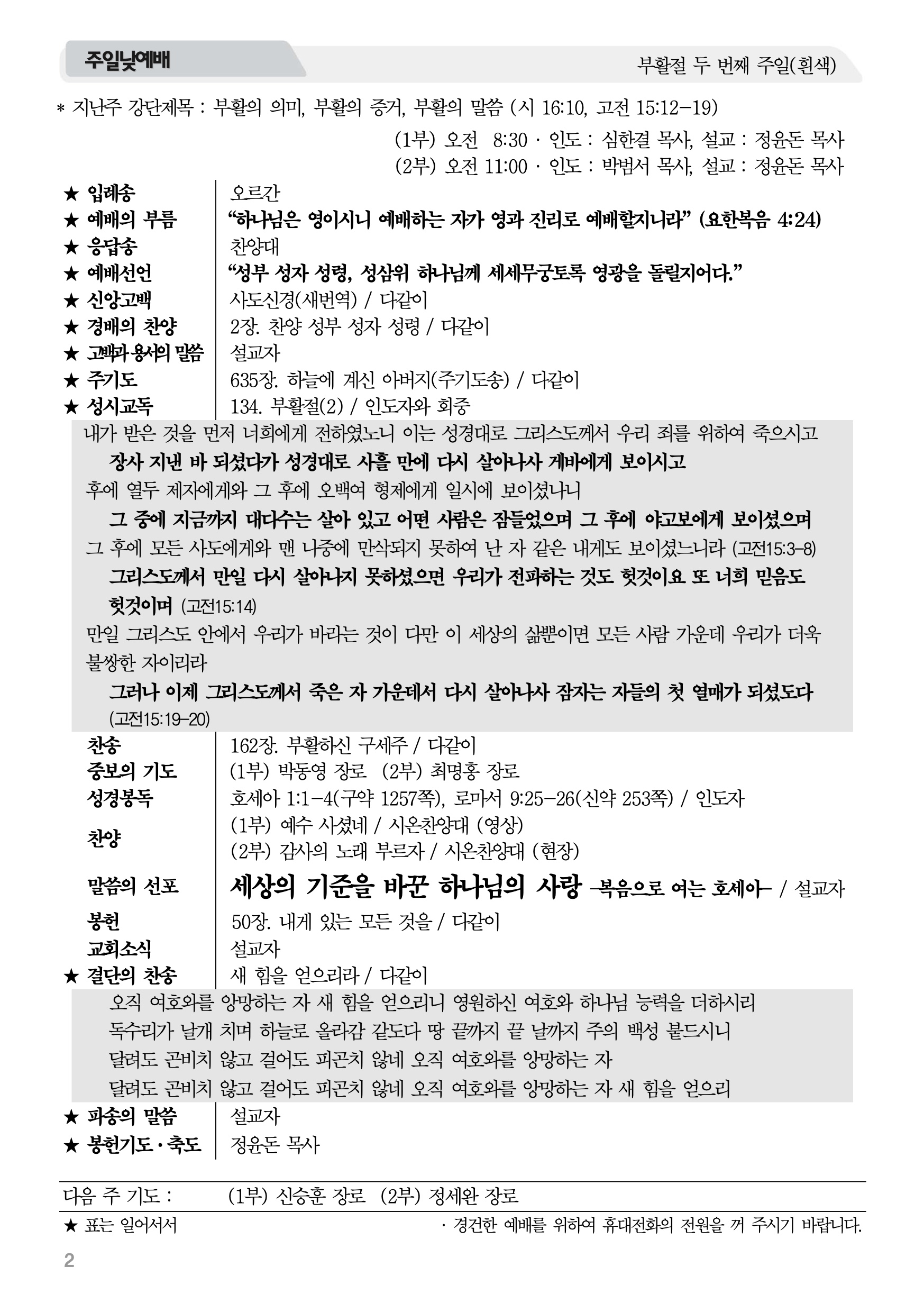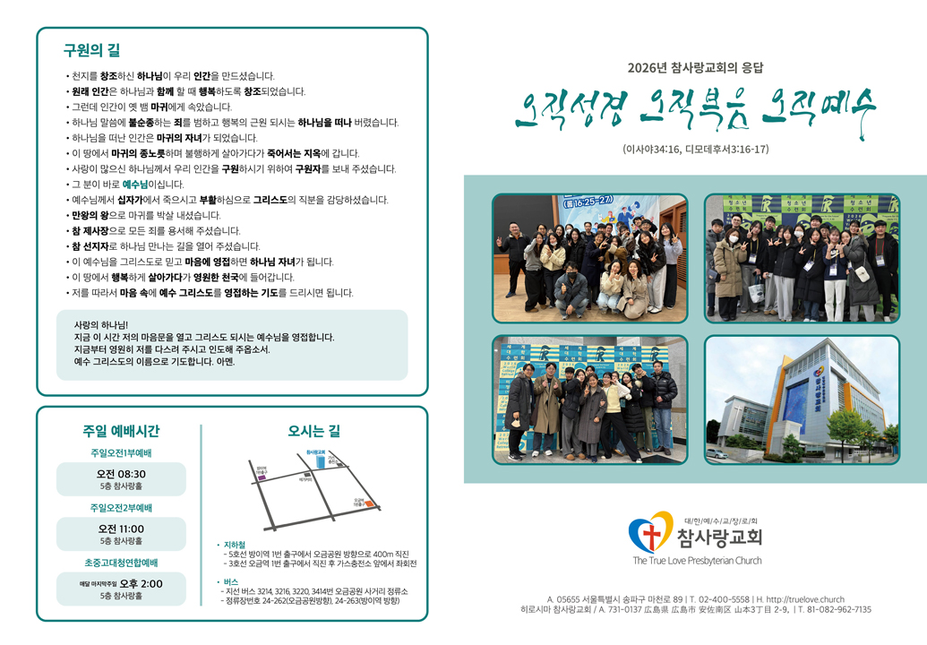 2026년 4월 12일 주보 2026년 4월 12일 주보 오직의 복음을 정리한 복음엘리트 누가(스7:10, 눅1:1-4) 2026년 4월 12일 주보 Posted on 2026년 4월 11일 in 주보 제 59권 16호 2025년 4월 12일 주보 주보 보기(PDF) Share this article: About truelove Related Articles 2019년 8월 4일 주보 2015년 6월 28일 주보 2024년 1월 21일 주보 2024년 3월 3일 주보